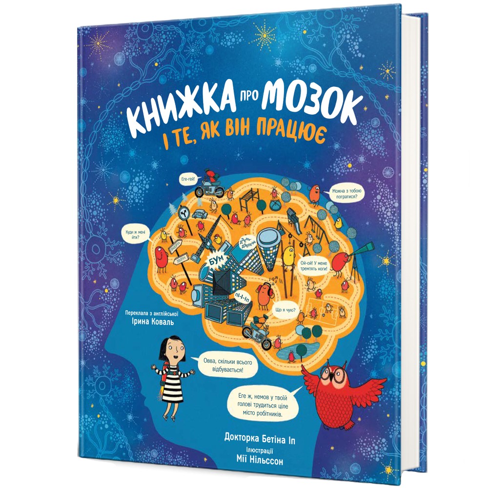 «Книга о мозге и том, как он работает» от Бетины Ип — это интерактивная иллюстрированная книга-путешествие по закоулкам человеческого мозга, предназначенная для любознательных читателей младшего школьного возраста. Знаете ли вы, откуда берутся мысли? Интересно ли вам узнать, как мы учимся что-нибудь делать, например ездить на велосипеде, или изучать стихи наизусть? Все это происходит благодаря нашему мозгу, который выполняет столько задач, словно внутри есть город, полный людей и механизмов.