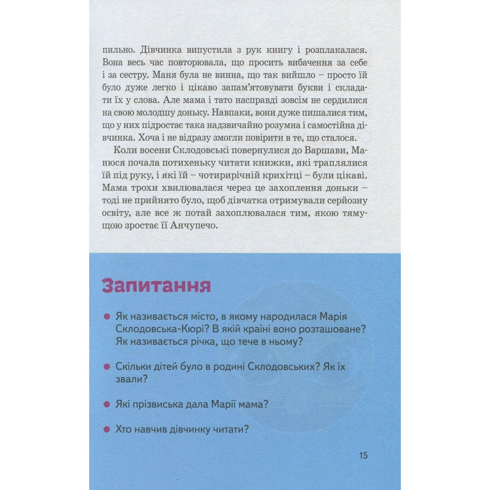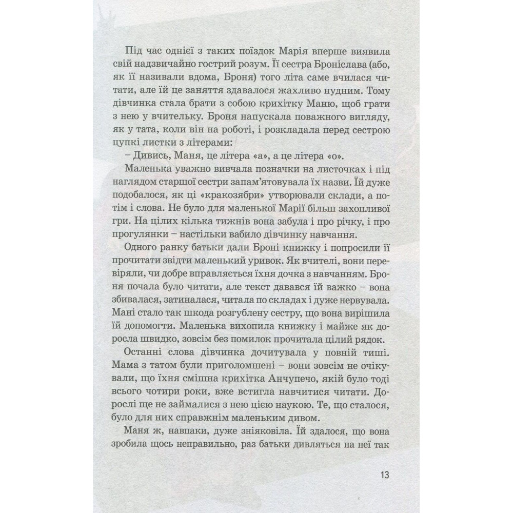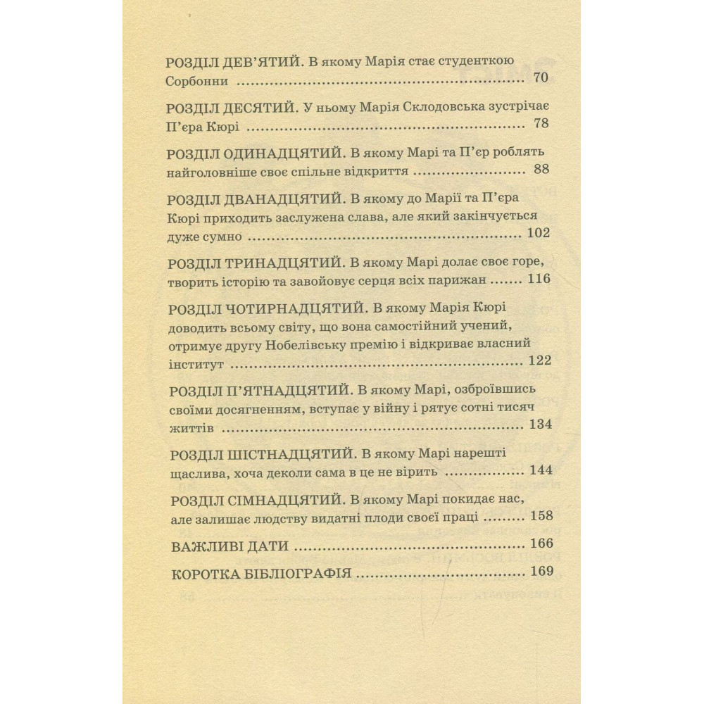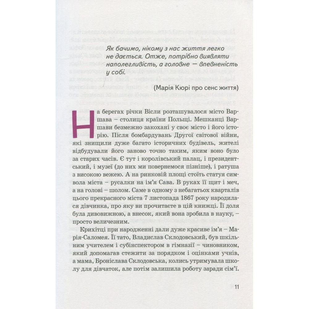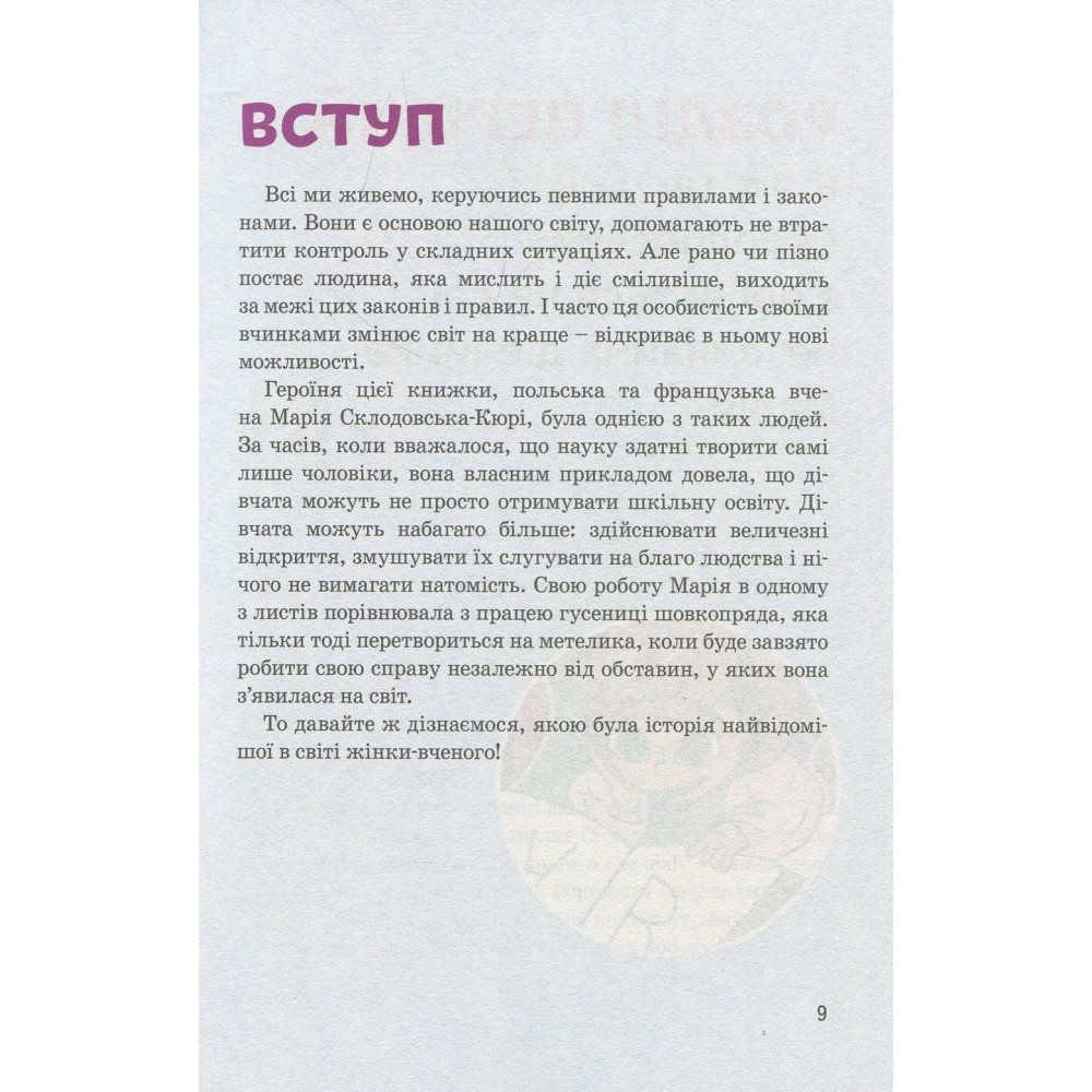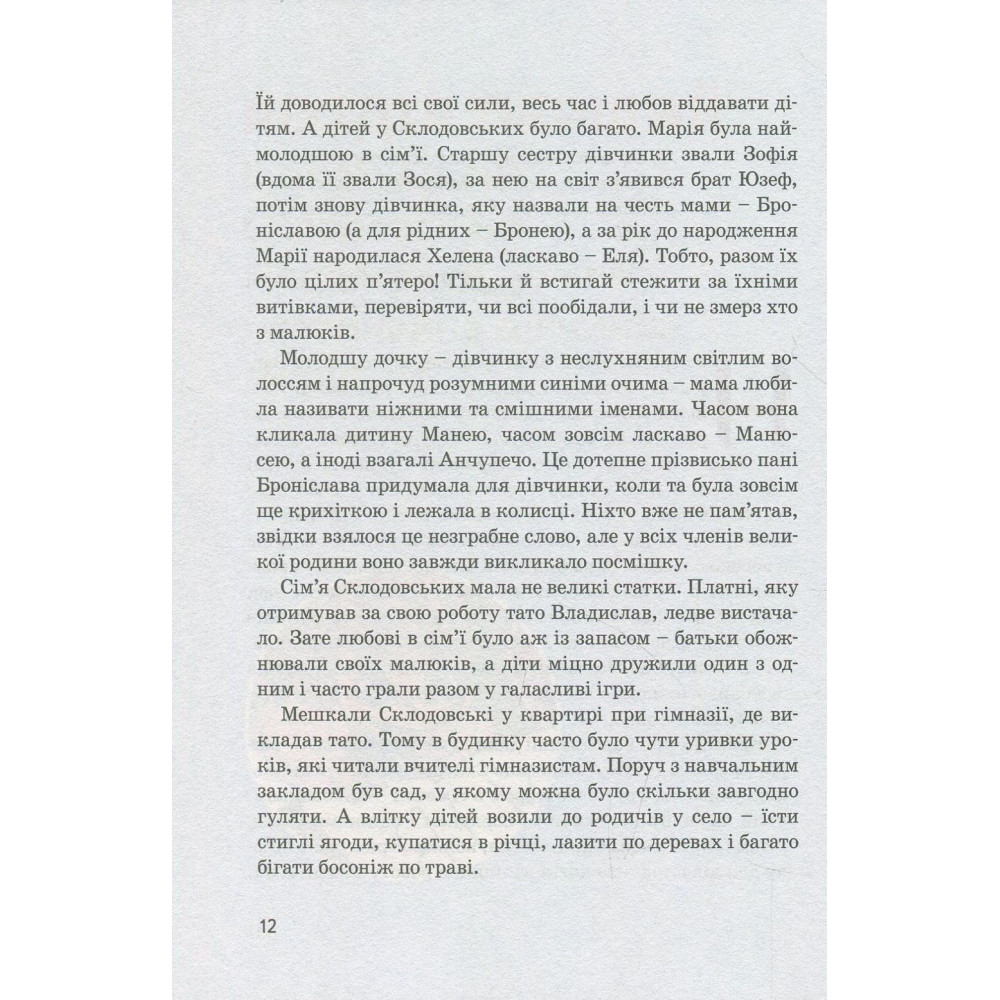 Книга-биография Юлии Потерянко расскажет юным читателям о жизни Марии Кюри — самой знаменитой женщине-ученой XX века, получившей две Нобелевские премии сразу в двух дисциплинах — физике и химии. Выдающимися достижениями Кюри считается открытие радиоактивности и таких элементов как радий и плен. Она не стремилась к славе и когда уже была известна всему миру — не прекращала работать.