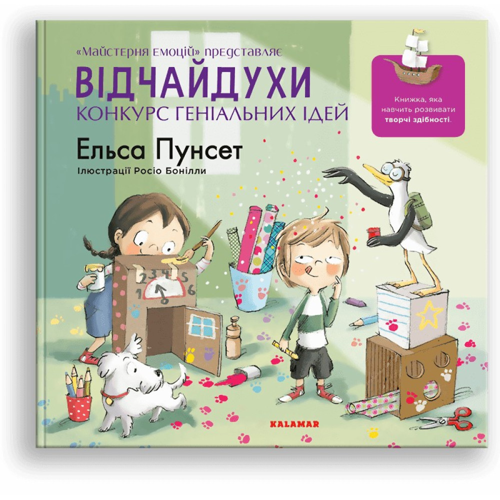 Книга «Відчайдухи. Конкурс геніальних ідей» від Ельси Пунсет та з ілюстраціями Росіо Бонілли допоможе дітям пізнати світ власних емоцій. Передусім історія пригодницька, адже більше за все діти полюбляють пригоди: цього разу діти разом з відчайдухами розкриватимуть власні творчі здібності, адже вони є в кожного.