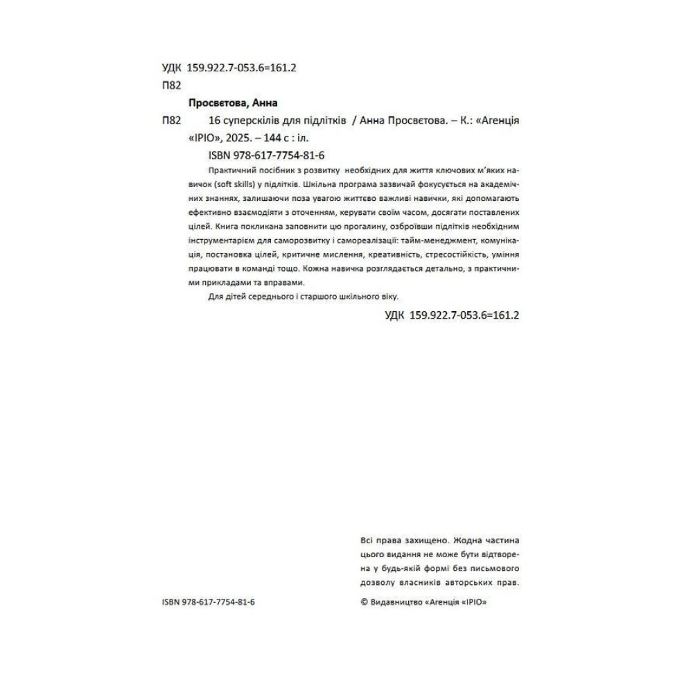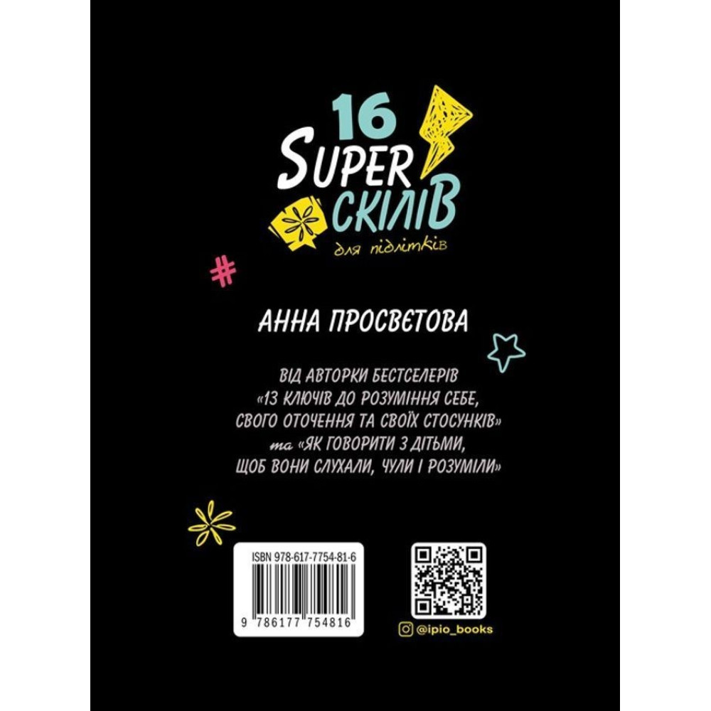 «16 суперскілів для підлітків» від Анни Просвєтової — це практичний і надихаючий посібник, створений, щоб допомогти підліткам розібратися в собі, навчитися спілкуватися, приймати рішення й упевнено рухатись у доросле життя.