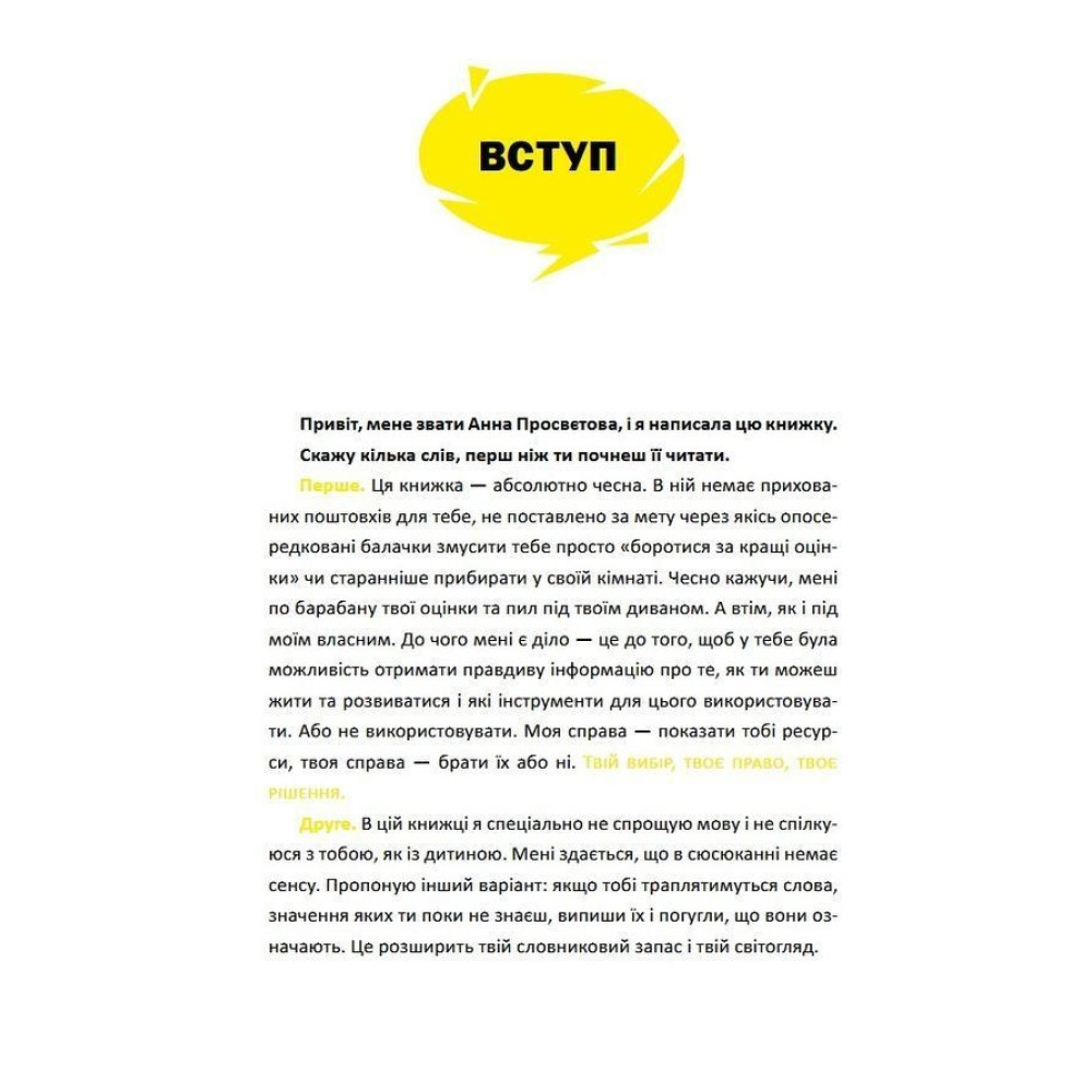 Це видання — дружня розмова без повчань, яка вчить приймати свої емоції, розвивати впевненість і шукати власний шлях у світі, що швидко змінюється. Ідеальна книга для підлітків, їхніх батьків і педагогів, які хочуть підтримати підліткове дорослішання з розумінням і повагою.