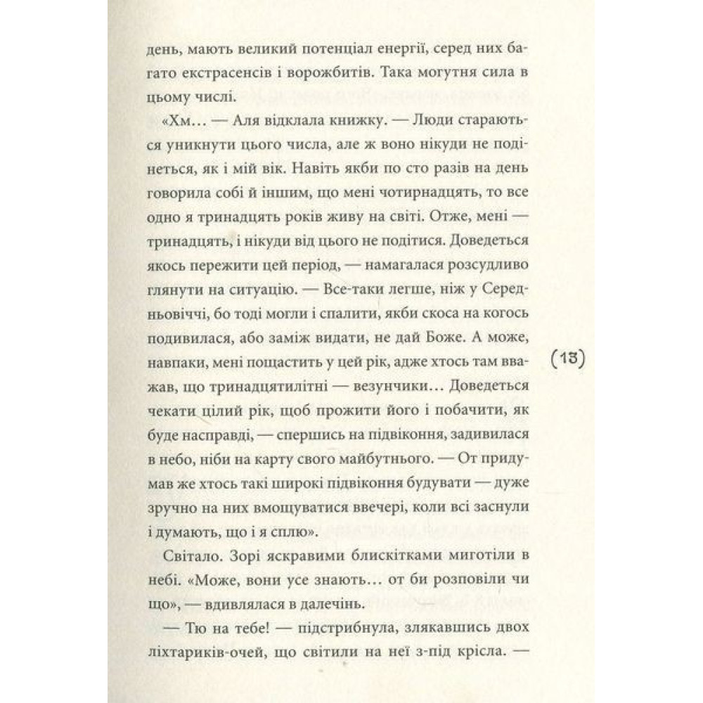 Ніби несподівано до Алі прилетіли її тринадцять. І знову все стало якимось дивним — світ, друзі, події в сім’ї і навіть сама собі. Алю приваблює і насторожує її ж загадкова дорослість.