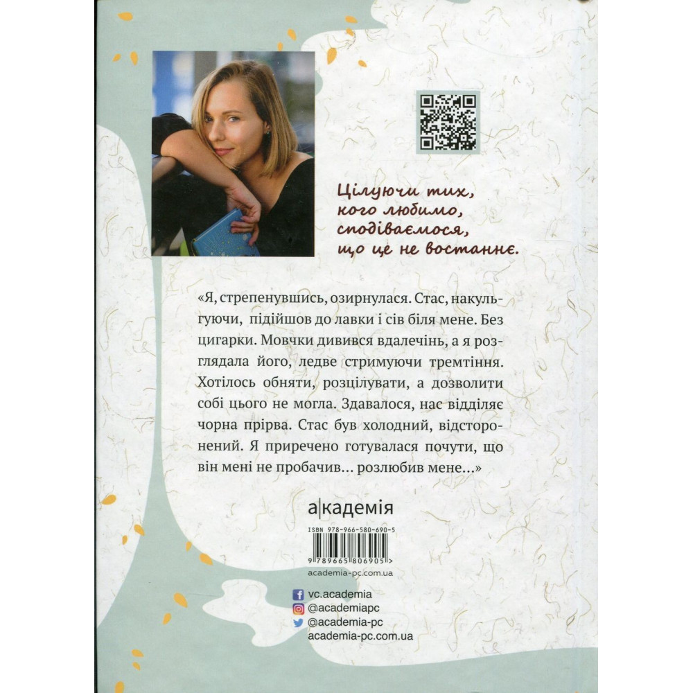 «Поцілунок був не останній: повість» за авторством Оксенії Бурлаки оповідає про Льолю, яка росла в благополучному світі, де були розкішна квартира, яскраві сімейні подорожі, брендовий одяг, дружний клас, ульотні тусовки. А одного дня з усім цим довелося розпрощатися й потрапити в зовсім іншу реальність. Її батька заарештували, і тепер вона й мама живуть з бабусею й дідусем у їхній пошарпаній квартирі.