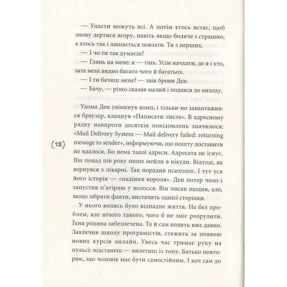 У цій незносній напрузі він пише мейли на неіснуючу адресу й одного разу отримує відповідь… Несподівано в нього з’являється новий друг — Ті, в якого свої секрети. Деякі з них стають непростими випробуваннями для Дена. Але всі проблеми колись закінчуються.