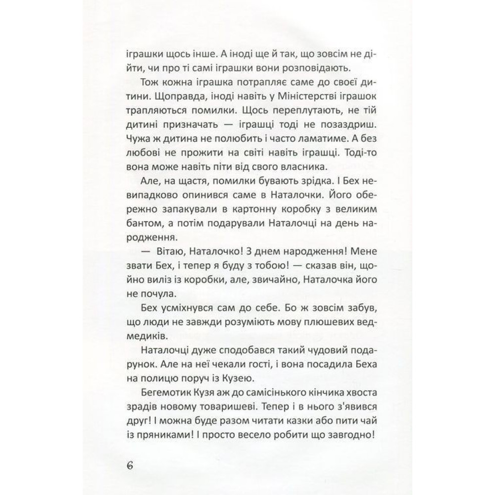 Дмитро Кузьменко і його «Історії з чаюванням» добре знають, що саме іграшки обирають собі дітей, аж ніяк не навпаки. От і плюшевий ведмедик Бех не випадково потрапив до дівчинки Наталочки. А як склалася його доля та які пригоди чекали на нього та його друга бегемотика, розкаже чудовий дитячий письменник за прізвиськом Кузя Кузякін.