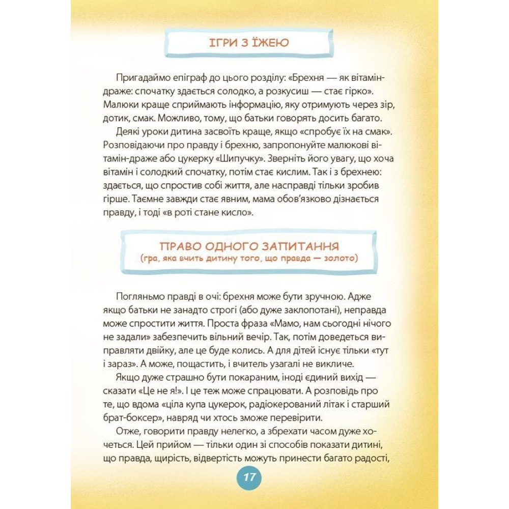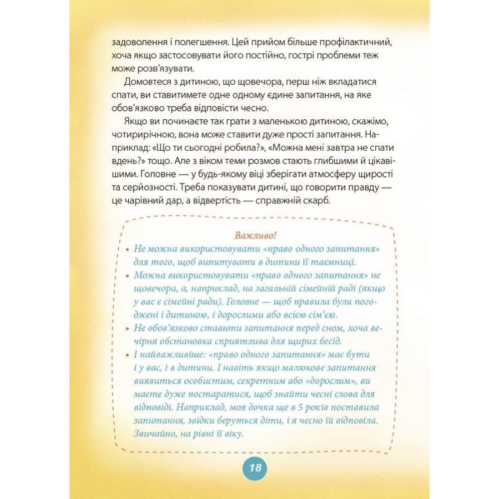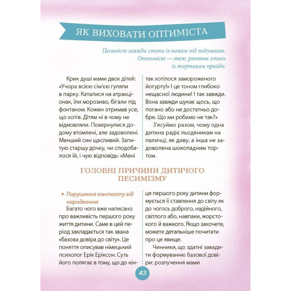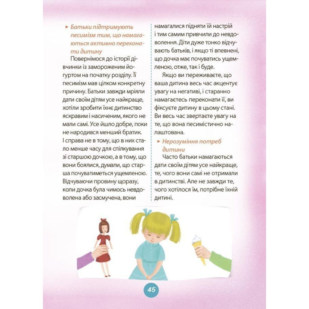 До кожного розділу містяться не лише ігри, казки та психотерапевтичні прийоми, а й детальний розгляд причин виникнення проблеми. Поради психолога допоможуть з іншого боку поглянути на власну поведінку та скоригувати її, аби досягти успіху.