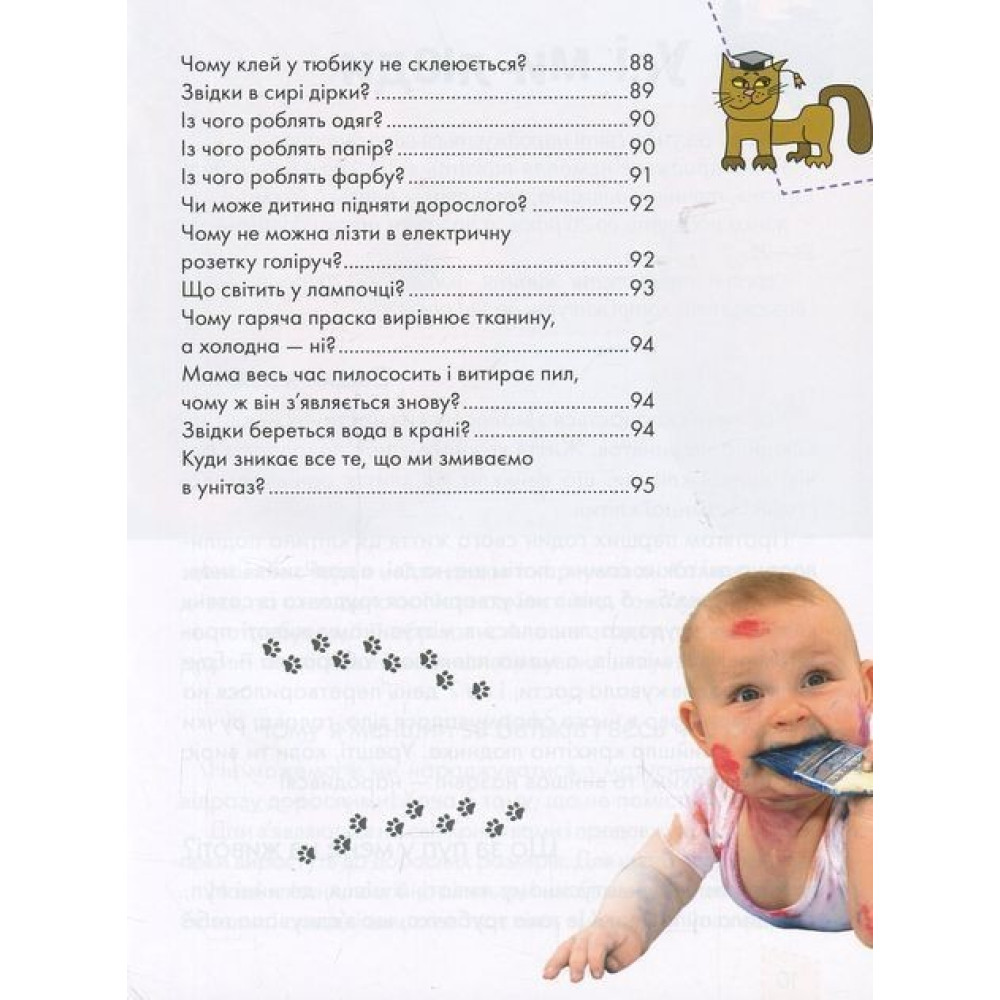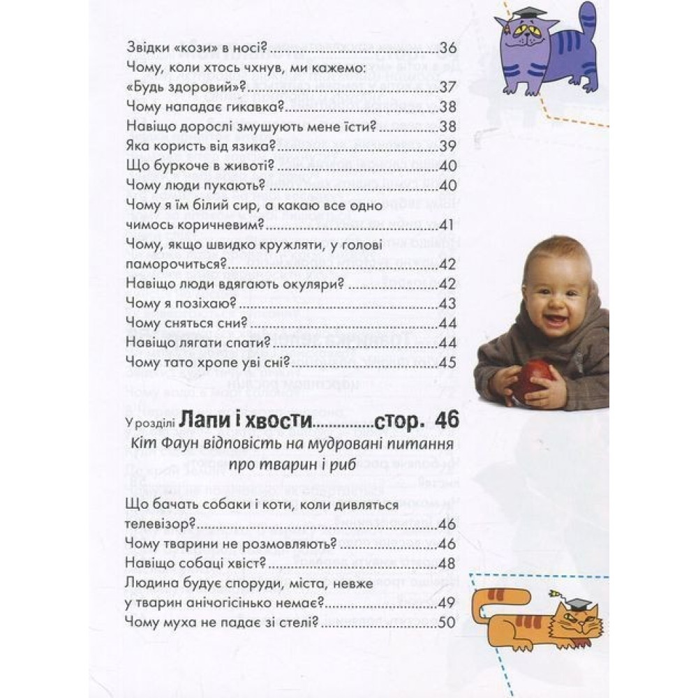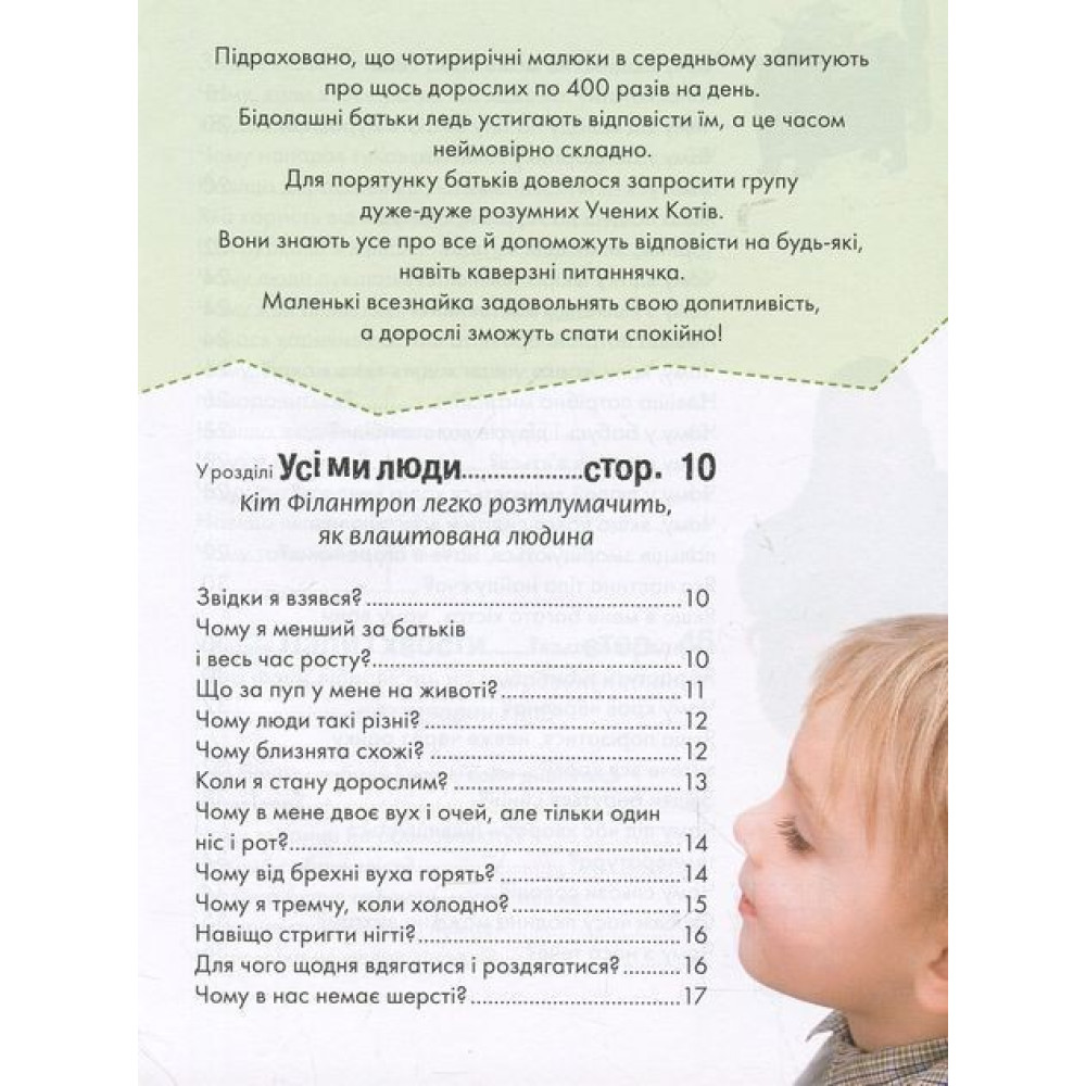 Адже маленькі чомучки наполегливо надокучають дорослим питаннями, бо хочуть знати все-все про цей дивовижний світ. Дитячі запитання часто тішать дорослих, іноді приголомшують і спантеличують. Кому з дорослих спаде на думку замислитися, чому в нього пара вух, та лише один рот? Чи боляче рослинам? Чому клей у тюбику не склеюється? Де в кішки мурчалка?