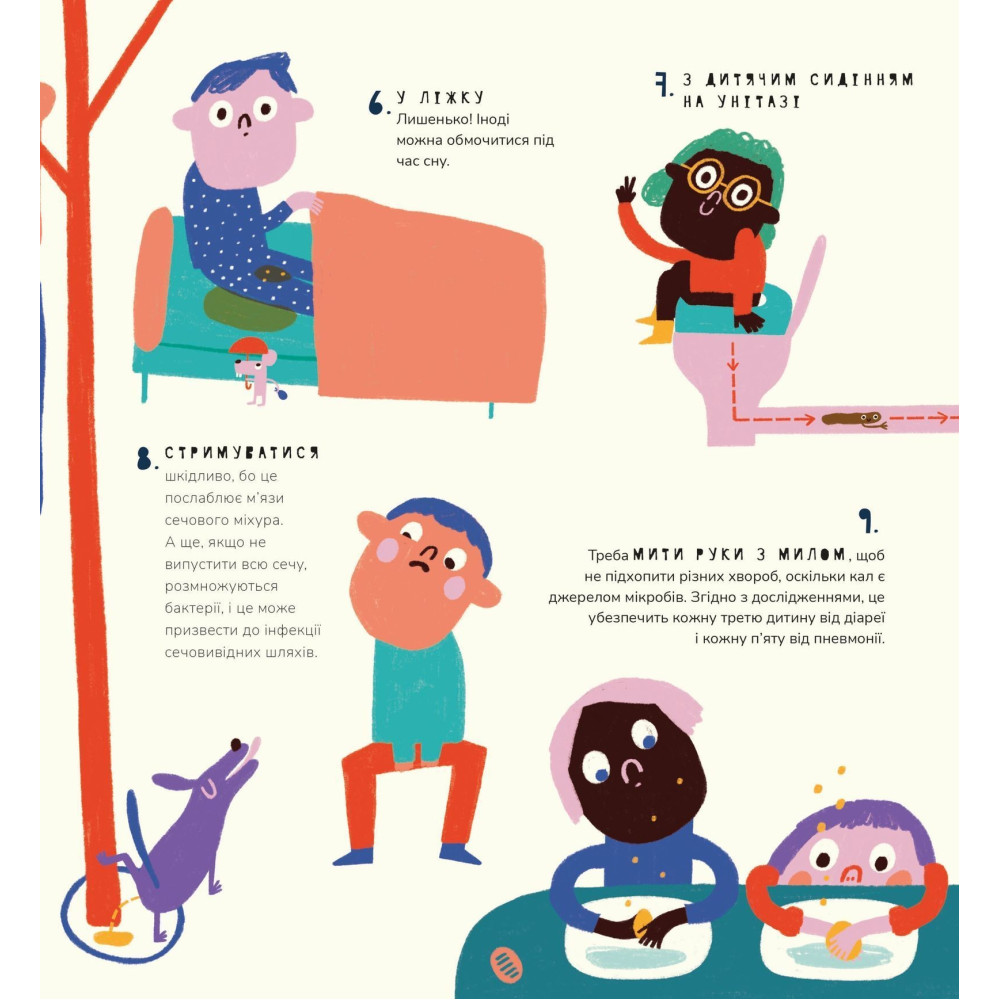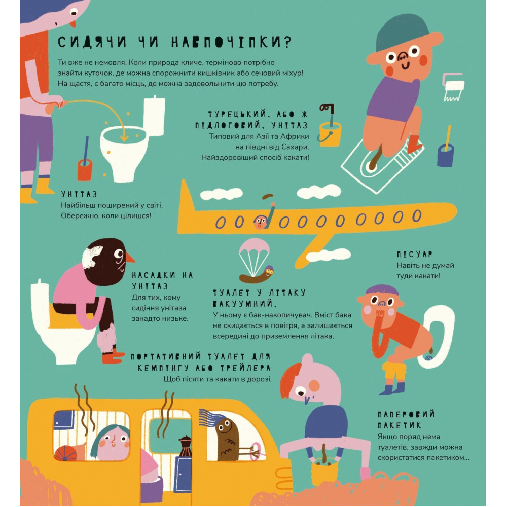 «Книжка про кака та пісь-пісь» — це дотепне, інформативне та без табу видання від іспанської авторки Маріони Толоси Сістере. Вона пропонує дітям та дорослим цікаву подорож у світ фізіології, розвінчуючи міфи та стереотипи про природні процеси.