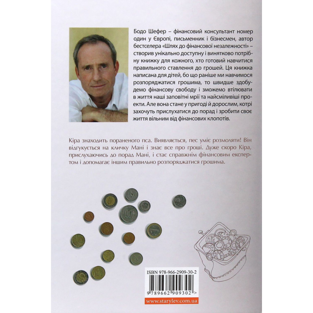 Книжка «Пес на ім'я Мані, або Абетка грошей» Бодо Шефера навчить дітей правильному ставленню до грошей, проте вона стане у пригоді і дорослим, котрі захочуть прислухатися до порад і зробити своє життя вільним від фінансових клопотів.