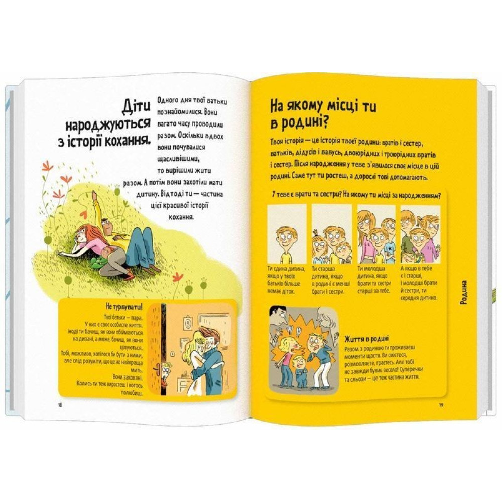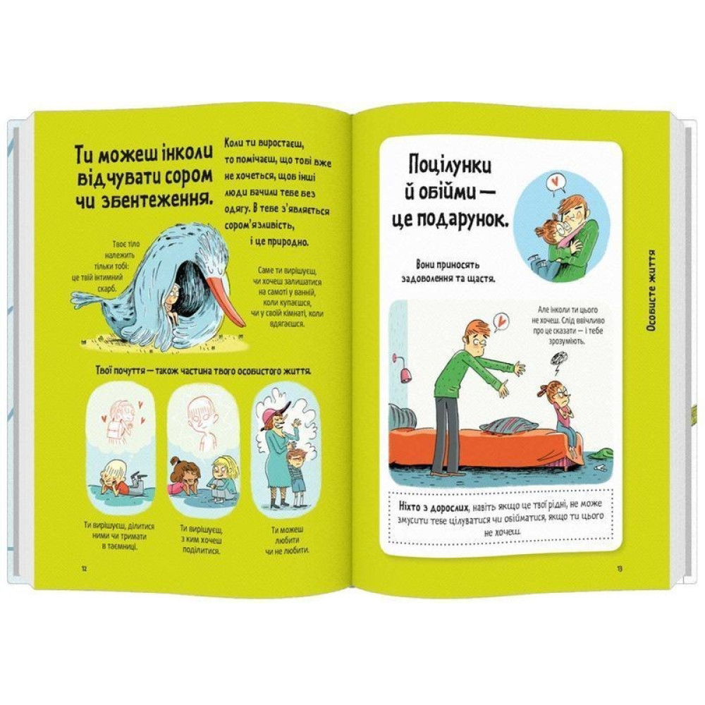 Книга на зрозумілому для молодших школярів рівні піднімає теми сорому, приватності, особистісних меж, дружніх та сексуальних стосунків. З її допомогою ви закладете міцне підґрунтя безпечної поведінки. Дітлахи отримають важливі знання про різні типи сімей, про родину і рід, відмінності між хлопцями та дівчатами, про фізичний та емоційний розвиток і багато іншої надзвичайно корисної інформації.