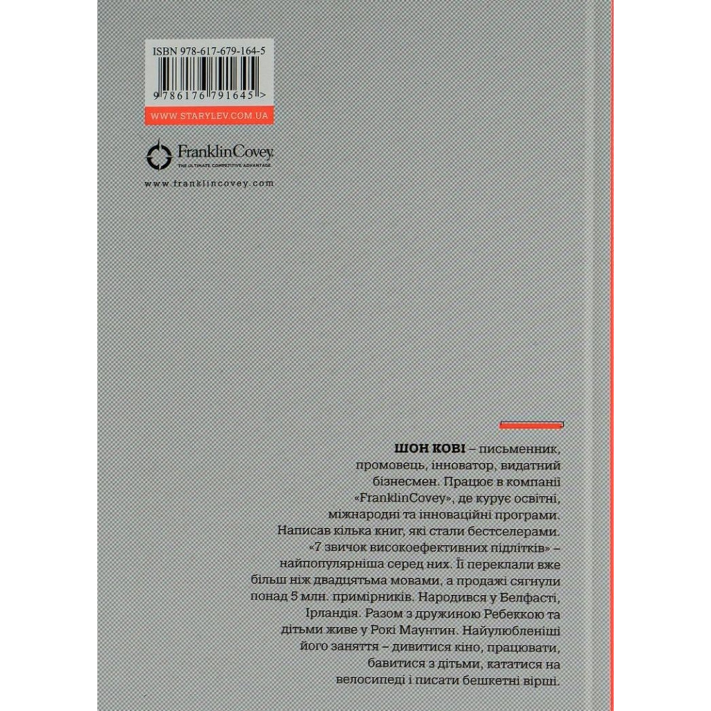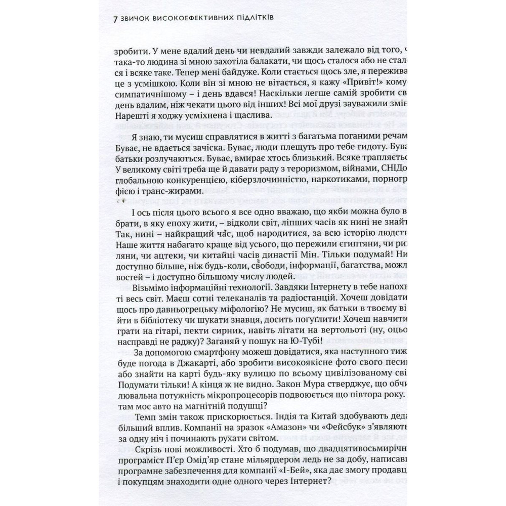 «7 звичок високоефективних підлітків» Шона Кові — це покроковий путівник для підлітків, який допоможе їм дійти із того місця, де вони є зараз, туди, де хочуть опинитися в майбутньому. Їхні цілі, мрії, плани – усе це здійсненне й досяжне. Просто потрібно знати, що допоможе правильно рухатися обраним шляхом.
