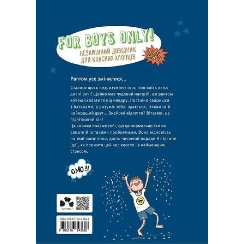 Книжка «BOYS! Про що мають знати круті хлопці» від Ілони Айнвольт ґрунтовно, відкрито і без прикрас відповість на запитання про твоє тіло, сексуальність, почуття, стосунки і пояснить, що ж відбувається з дівчатами у підлітковому віці. Із цими знаннями ти зможеш більш упевнено пізнавати себе і починати важливі для тебе розмови.