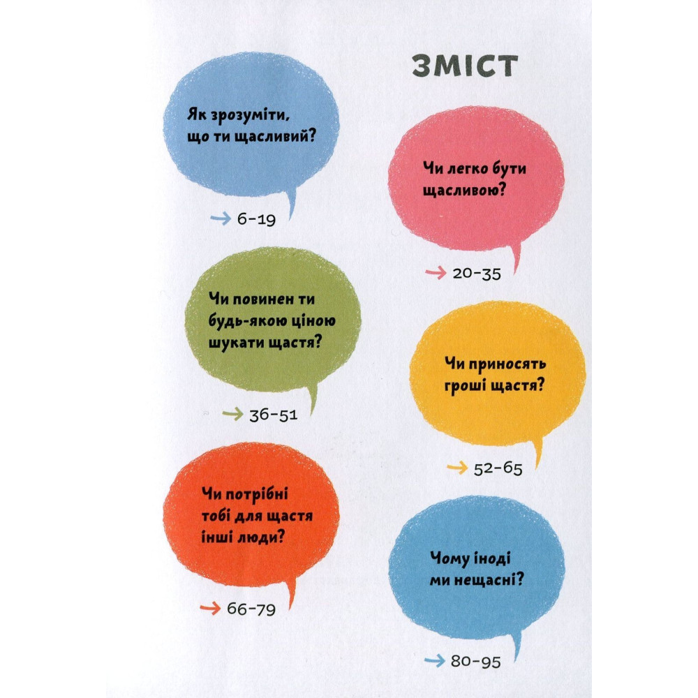 Чи повинні ми будь-якою ціною шукати щастя? Чи воно радше має прийти саме? А якщо твоє щастя завдасть нещастя комусь іншому? Чи взагалі можливо весь час почуватися щасливим? І чи справді сенс життя полягає в пошуку щастя? — на все дотепним та ненав'язливим чином відповідає юному читачеві книга «Що таке щастя?» Оскара Бреніф'є.