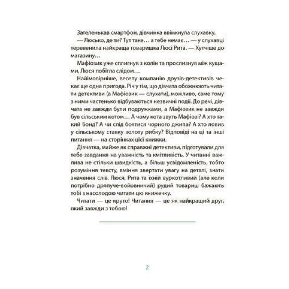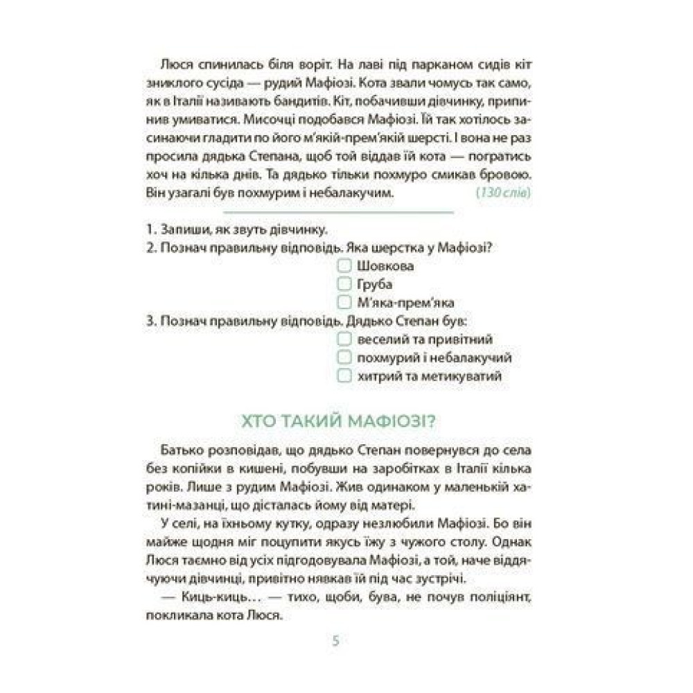 Усередині книжки Юрія Ключа «Таємниці, розкриті рудим Мафіозі. Читанка-детектив із завданнями. 8-9 років» — детективна історія з пригодами дівчинки Люсі та рудого кота на ім’я Мафіозі.