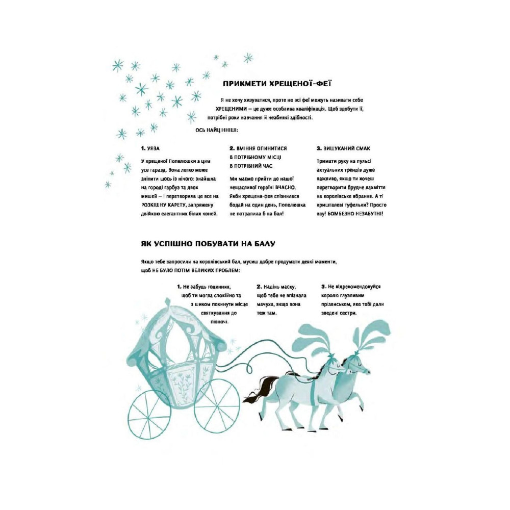 Завдяки мудрим порадам хрещеної-феї можна дізнатися, як боронитися від злих відьом та королев, як розпізнати справжніх друзів і чому інколи важливо дослухатися до свого серця. І пам’ятай найголовніше: бути сучасною принцесою означає насамперед бути собою!