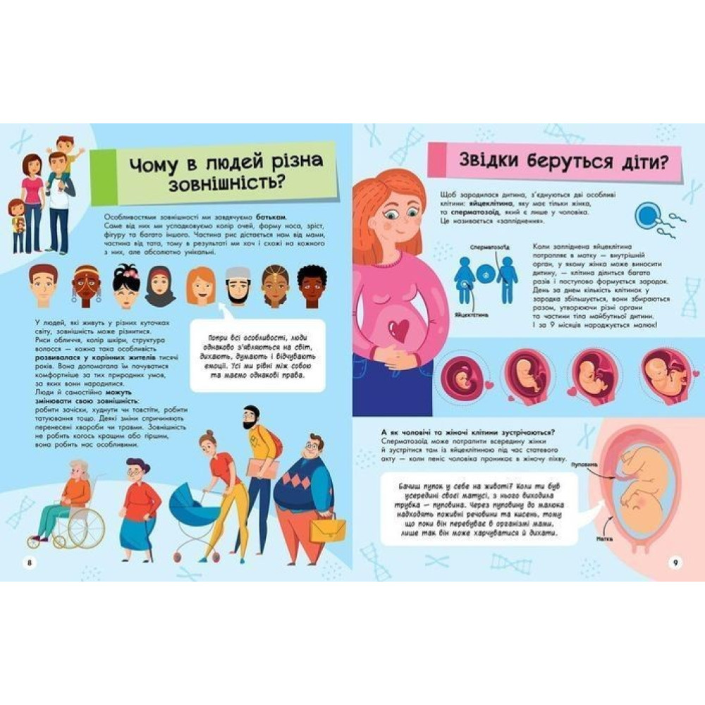 Книжка охоплює шість тем: людина, тварини, природа, космос, техніка, їжа. А запитання тут сформульовано, неначе з вуст дошкільника.