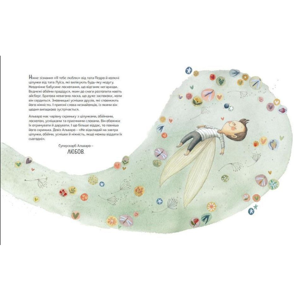 18 коротких історій у книжці «Велика книжка суперскарбів: Тих, що справді важливі» за авторством Сусанни Ісерн, яка супроводжена ілюстраціями Росіо Бонілли познайомлять діточок з вісімнадцятьма складовими елементами справжнього щастя.