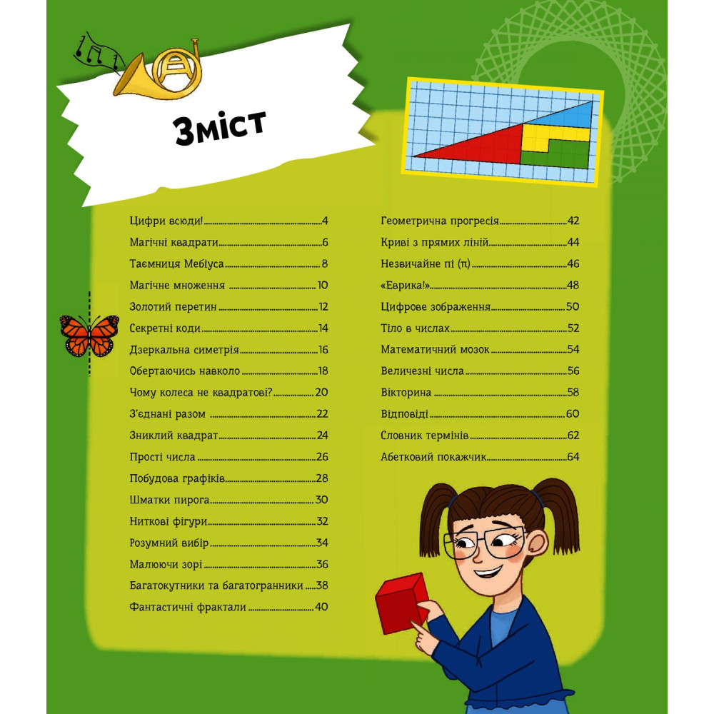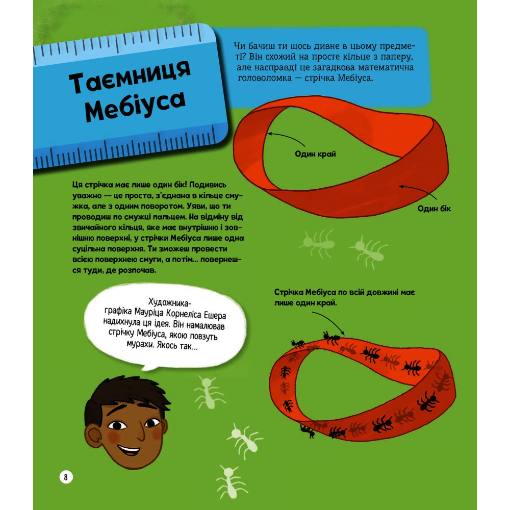 Стрічка, що має лише один бік, трикутні колеса, фрактальні дерева — це далеко не всі таємничі цікавинки, які приховує математика. Завдяки книжечці «Я можу бути математиком» від Анни Клейборн маленькі читачі вивчать складні математичні поняття, всього лише малюючи, вирізаючи щось та в цілому граючись. Тепер математика не видаватиметься суто теоретичним предметом, який нібито не знадобиться в реальному житті: на сторінках видання є безліч прикладів, коли математичні секрети і правила можна застосувати до всього, що нас оточує в повсякденні. А чи знають, приміром, батьки, як намалювати овал за допомогою нитки? Чи як коректно побудувати графік, або ж розшифрувати двійковий код? Не знають? Тоді ця книжка підкаже вам й вашій дитині в цьому розібратися.