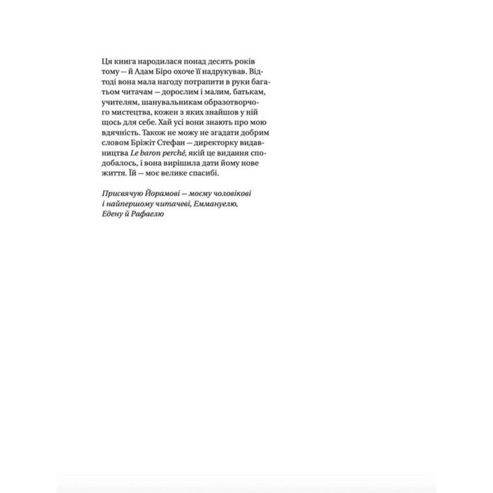 Простими словами і в зручній формі — книжечкою «Як розмовляти з дітьми про мистецтво» — Франсуаза Барб-Ґалль підказує, як навчити дітей «бачити» картину, розуміти її і відчувати. На найпоширені й найактуальніші питання запропоновано лаконічні відповіді, покликані задовольнити цікавість і заохотити до нових пошуків.