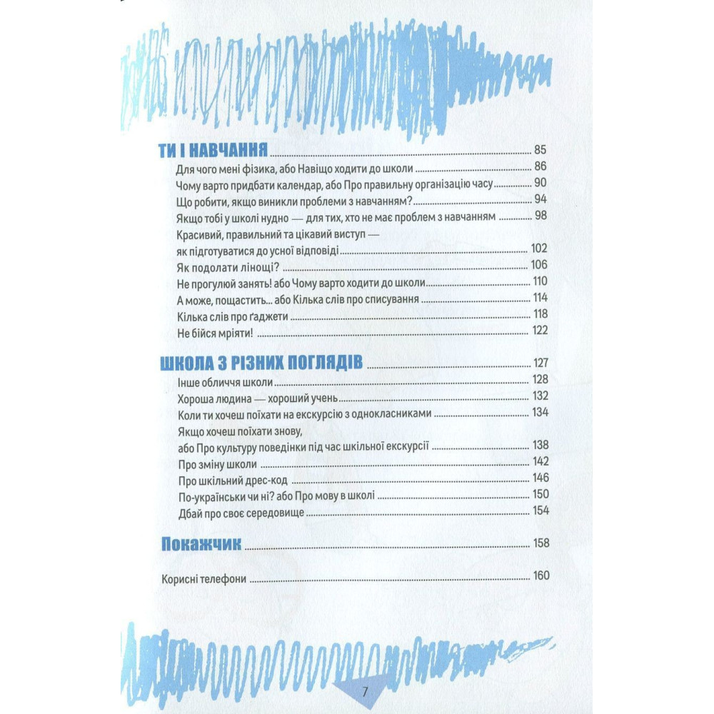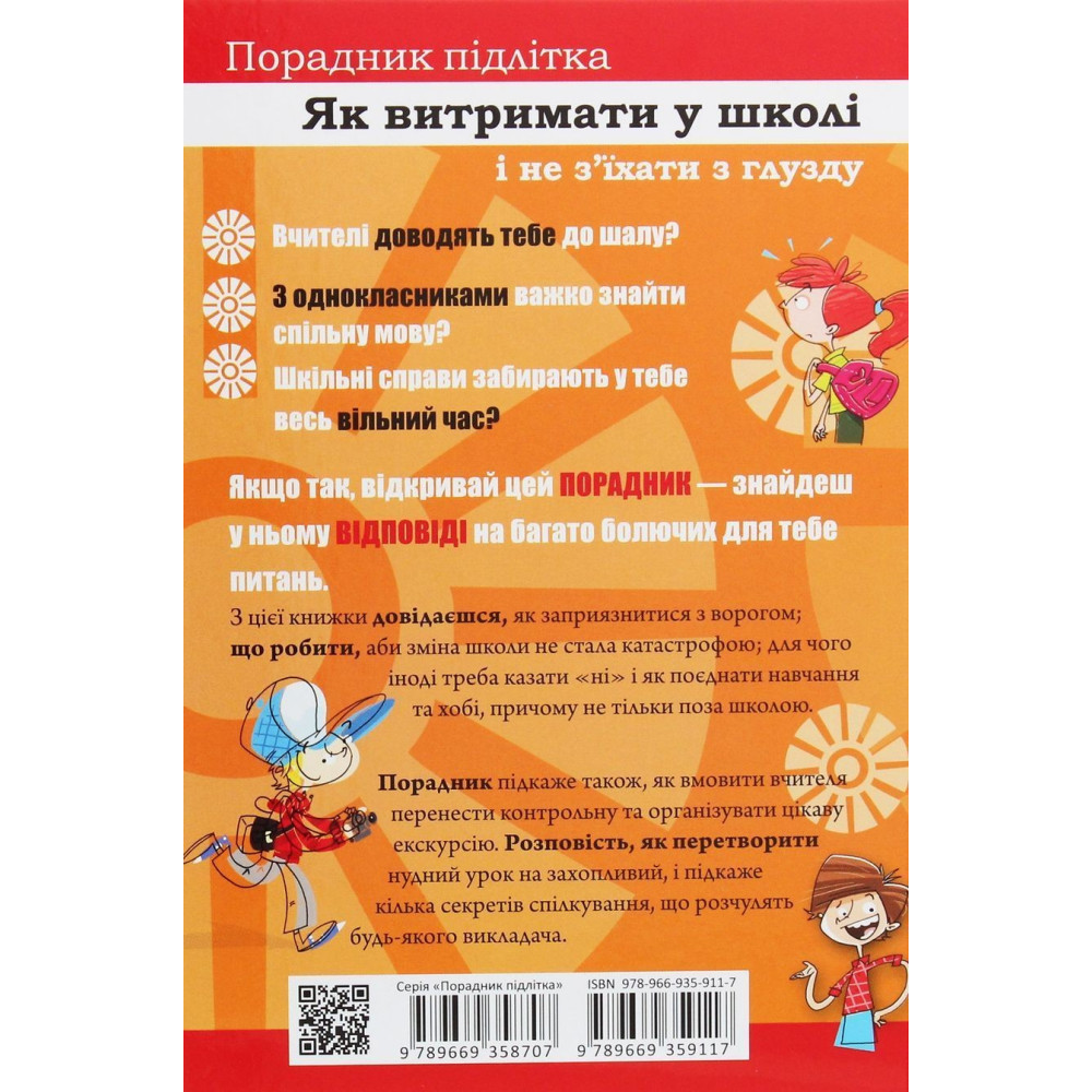 У цьому пораднику можна знайти чимало корисного для себе і дізнатися про те, до кого звернутися зі своїми проблемами, як змінити шкільне життя на краще і зробити так, щоб школа викликала лише позитивні емоції.