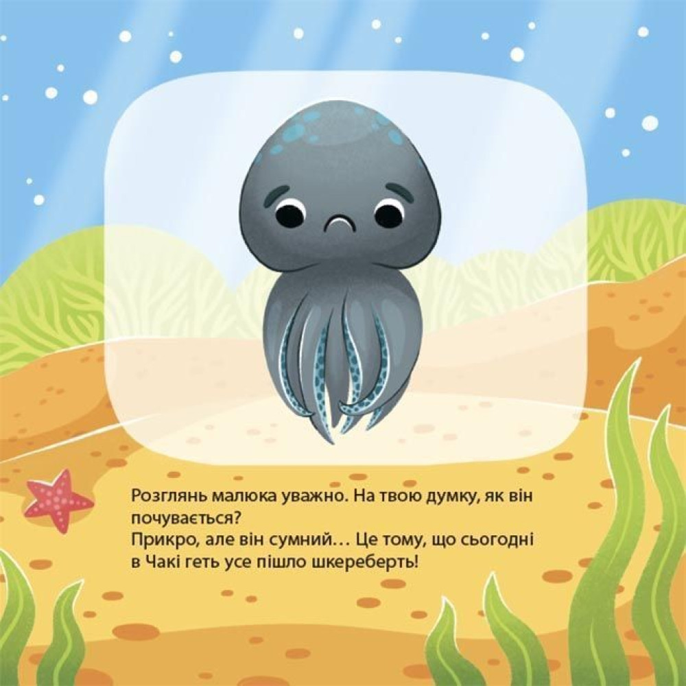 Головний герой книги «Як восьминіжка Чакі сумував» від Наталії Чуб переживає різні емоції. Він радіє, сумує, злиться, дивується, боїться. Знайомиться зі своїми почуттями й намагається керувати ними. Разом із Чакі маленькі читачі також дізнаватимуться про різні емоції та вчитимуться приймати їх і давати собі раду.