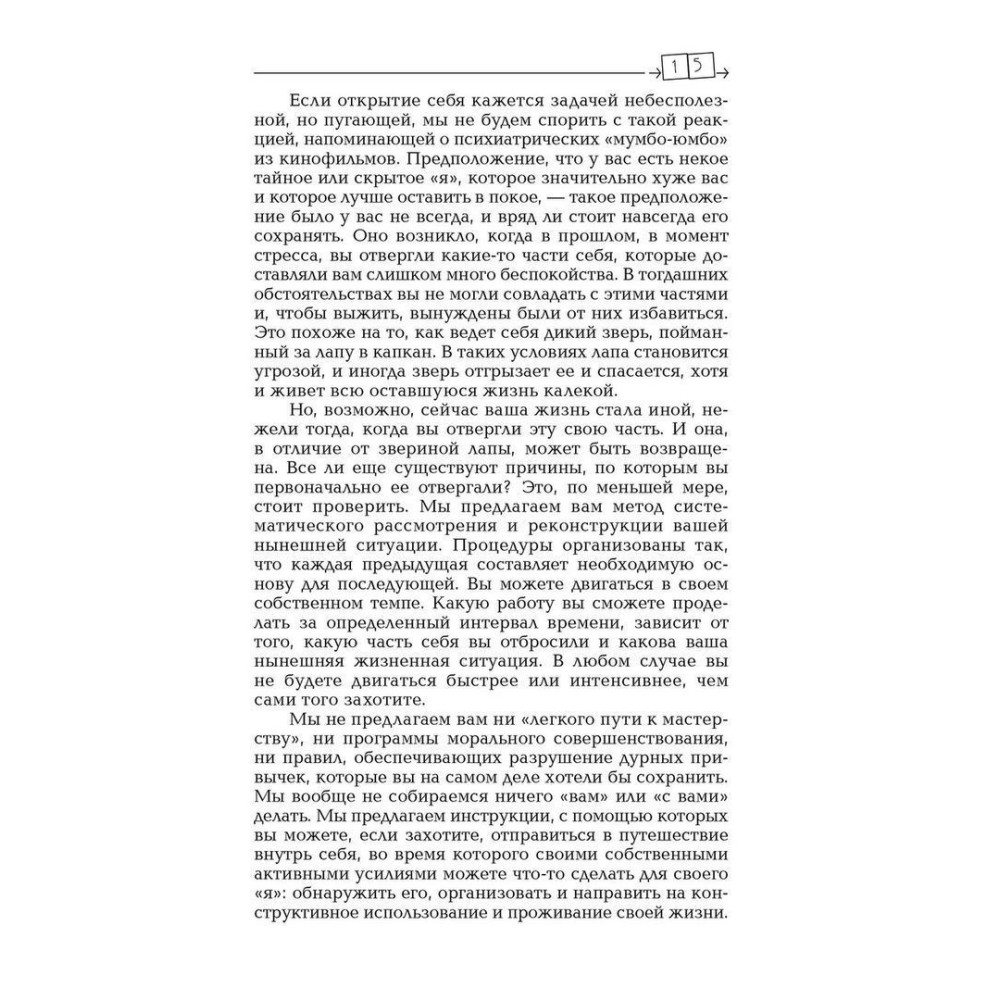 В ней сформулированы основные принципы этого психотерапевтического подхода, переплавившего в себе критически переосмысленный психоанализ, прозрение гештальтпсихологии, откровение экзистенциализма и феноменологии. Методы гештальттерапии излагаются здесь в расчете на самостоятельную работу читателя. Впоследствии установка на аутотерапию не получила развития в гештальттерапевтическом движении, которое оформилось скорее как психотерапевтическая школа. Однако основное содержание понятий и методов, развитых в этой книге продолжает оставаться фундаментом гештальттерапии и в ее современных вариантах.