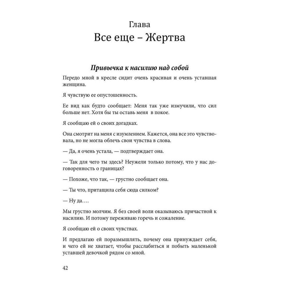 В этой книге собраны мои тексты, описывающие мой личный опыт отношений - с равными (взрослыми), детьми и клиентами. Клиенты – это очень интересная группа людей, с которыми я нахожусь в двойных отношениях – и как со взрослыми, и как с детьми. Мы вместе исследуем разнообразие всех тонкостей и нюансов взаимодействия — от глубинных мотиваций к сопротивлению, чувствам — от надежды к отчаянию, от любви к ненависти... Мы через себя узнаем, что такое границы, и как взаимодействовать на равных, по-партнерски, не вскакивая на привычных ковзаков.