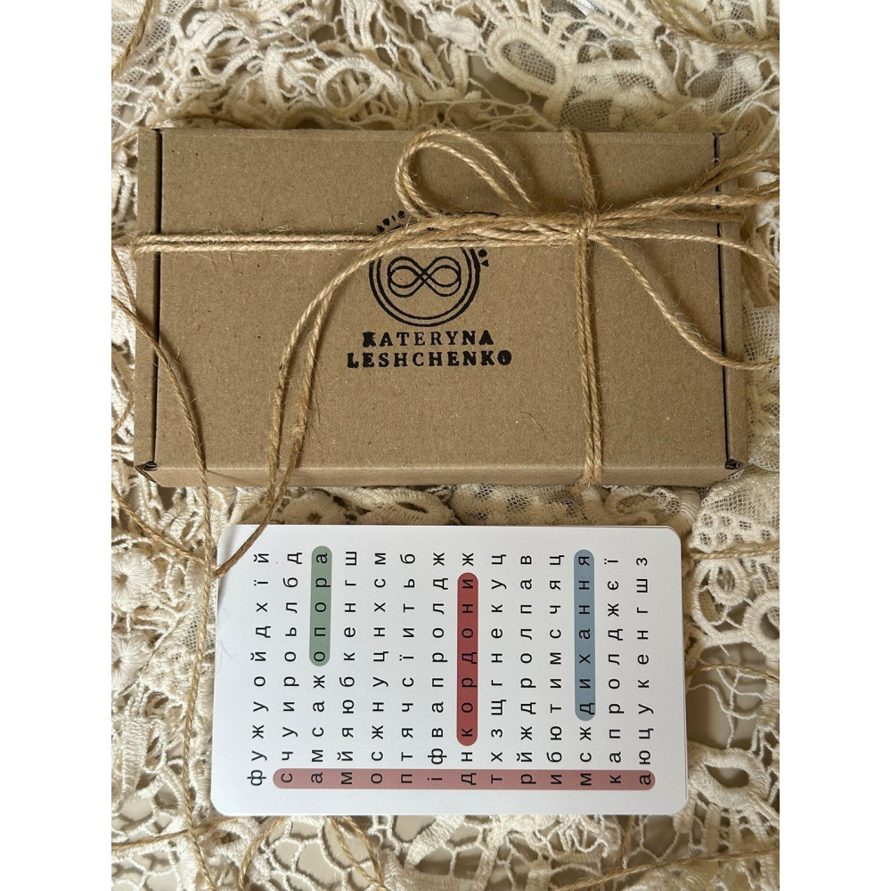 ✔️ 25 карт с соматическими упражнениями, распределенные по категориям: Границы, Опора, Самоподдержка, Дыхание.