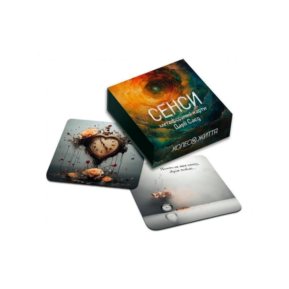 Метафорически-поточные карты «Сенсы» по авторству Дарии Саед — новый набор метафорических карт от издательства «Колесо Жизни»: простой для использования, с яркими картинками и интересными смысловыми тезисами.