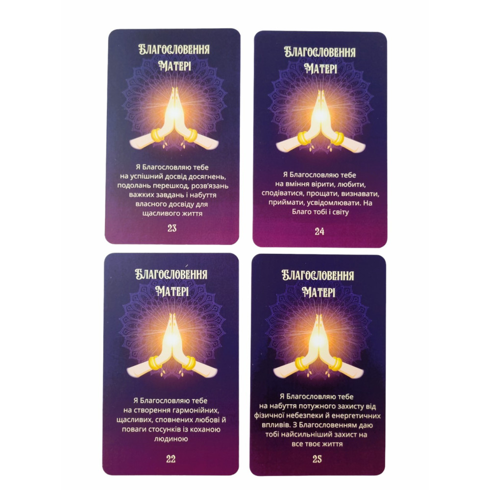 На оборотной стороне картинок вы найдете благословение на реализацию в определенных сферах жизни. Все благословения направлены на то, чтобы раскрыть потенциал.