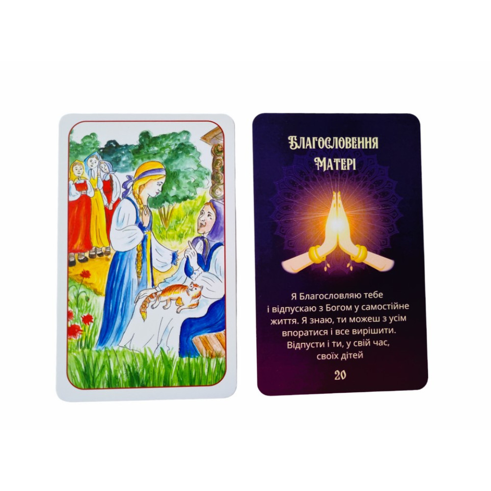 Набор метафорических картинок с посланиями «Благословение Матери» был создан Татьяной Лемешко для того, чтобы помочь увидеть сценарии, работающие в родовой системе, а также получить ресурс для реализации тех желаний, которые до сих пор не удавалось осуществить.