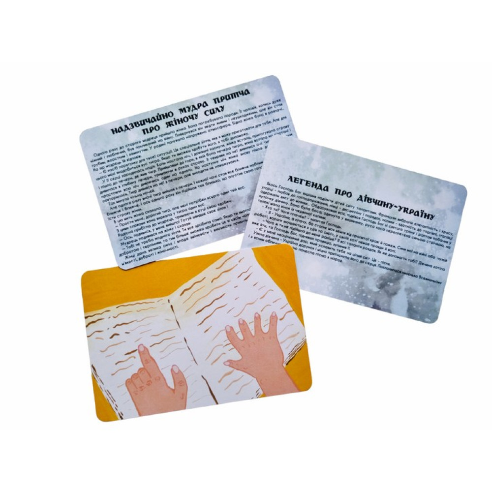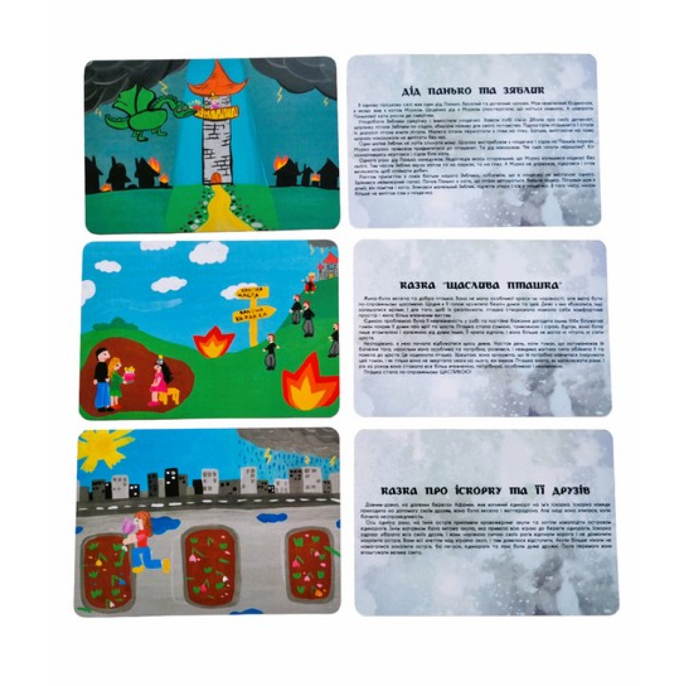 35 двусторонних карт (с одной стороны изображения, с другой – сказка; размер 9*13 см);