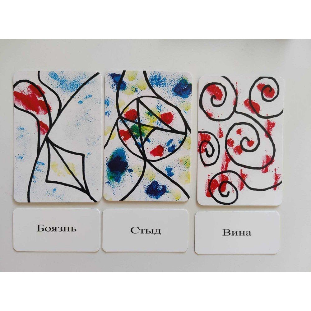 В набор Метафорических карт "Травма" Ксении Карачун входит 50 карт-изображений и 66 карт-названий эмоций.