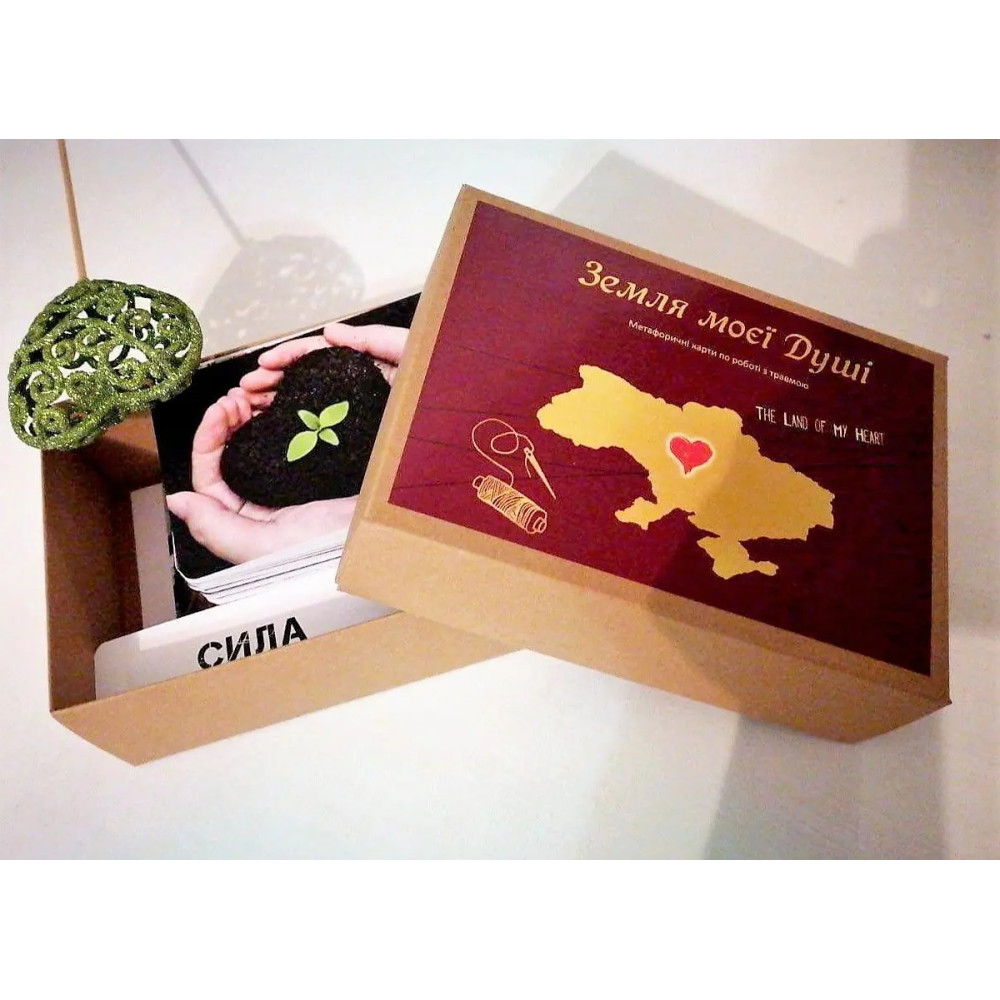 Бревно метафорических карт Ирины Саченко «Земля моей души» была создана во время войны в Украине в 2022 году как второй тираж бревна «Клаптики моего сердца» и предназначена служить специалистам, которые помогают людям справиться с военной травмой и травматическими событиями как в военное время, так и во время адаптации.
