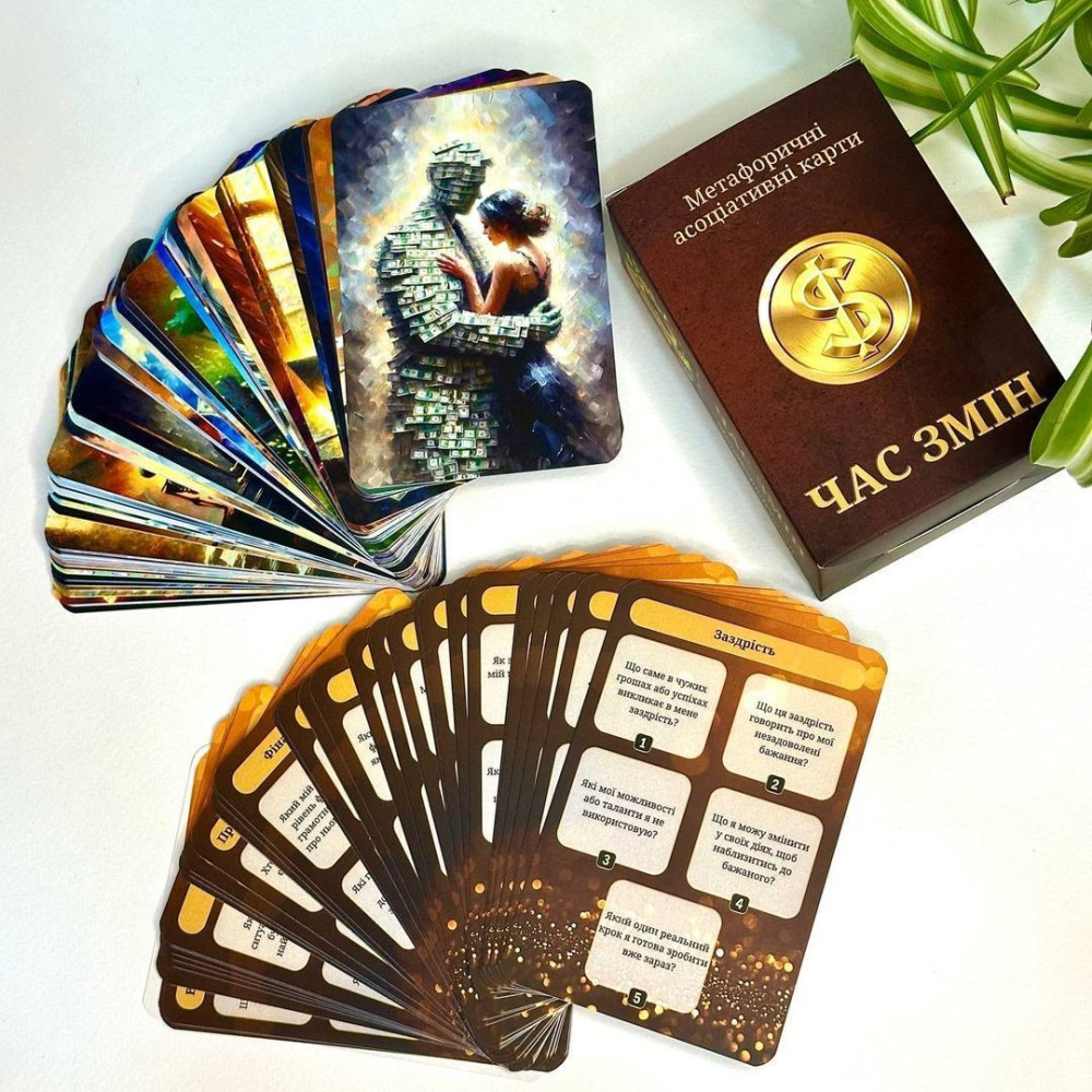 ▫ ️ индивидуальных сессиях ▫ ️ программах самопознания и изменений Колода будет полезна как новичкам, так и опытным практикам, стремящимся глубже прорабатывать тему денег и личной ценности. С какими темами работает «Время перемен»: