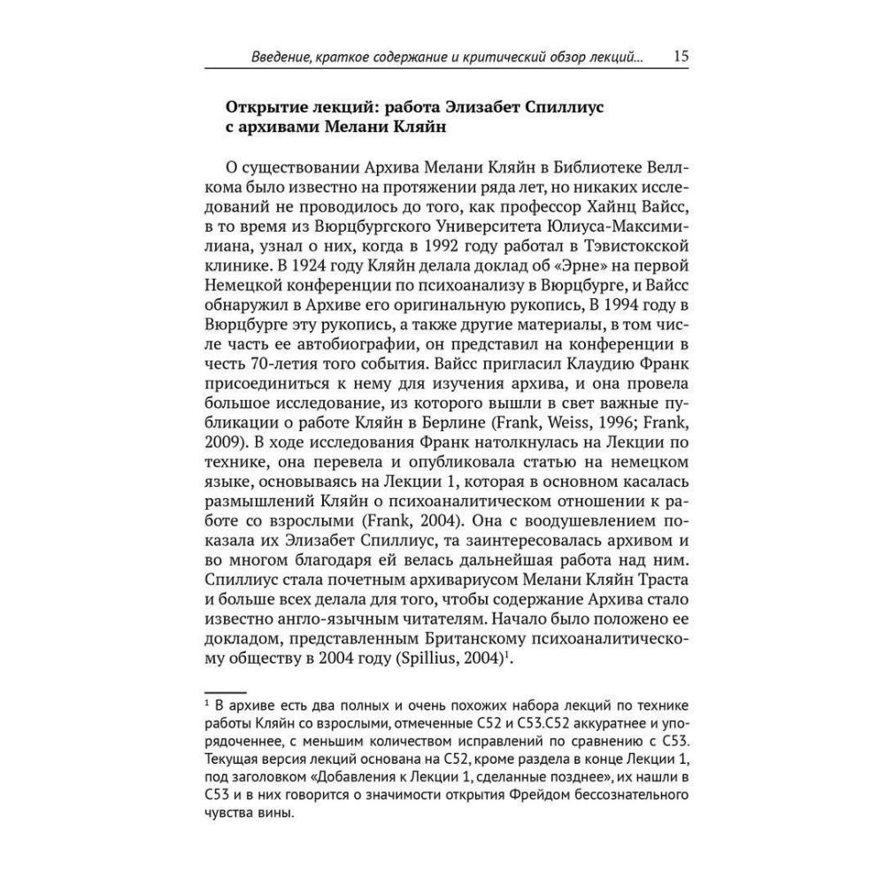 В данной книге — «Лекции Меланы Кляйн по психоаналитической технике. Редактирование и критический обзор Джона Стайнера» содержится редкий, ранее не публикуемый материал лекций и семинаров Мелани Кляйн, что позволяет глубже понять специфику кляйнианской теории и техники.