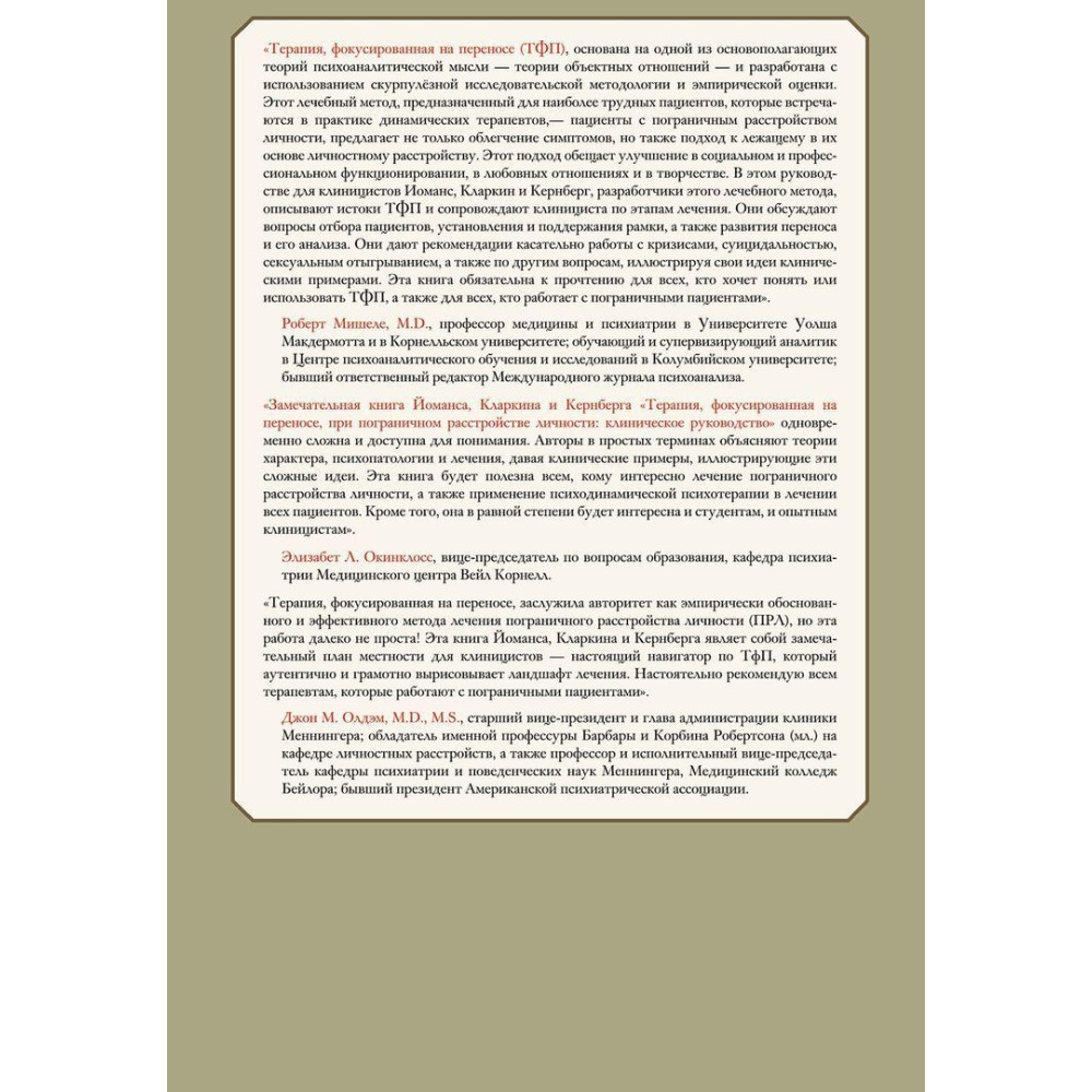 | Автор | Фрэнк Йоманс, Джон Кларкин, Отто Ф. Кернберг; издательство «Psy Event» |