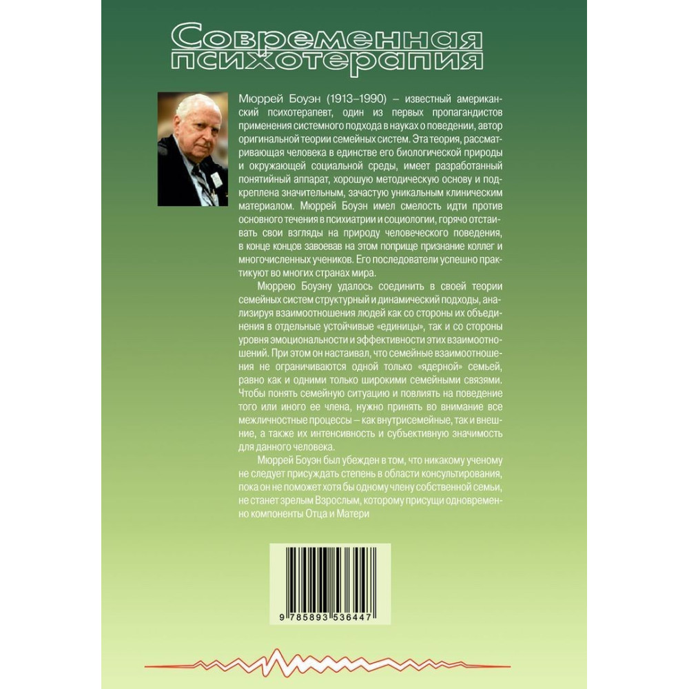 «Теория семейных систем Мюррея Боуэна» по авторству Анны Варги и Кэтрин Бейкер включает статьи известного американского психиатра и психотерапевта Мюррея Боуэна (1913-1990 гг.), а также его ближайших студентов и последователей и дает представление о теории семейных систем, созданных. Помимо общих теоретических аспектов теории семейных систем, книга включает такие темы, как супружеский конфликт, детская психопатология, эмоциональные пробелы и другие особые вопросы (инцест, смерть значительного члена семьи и прочее).