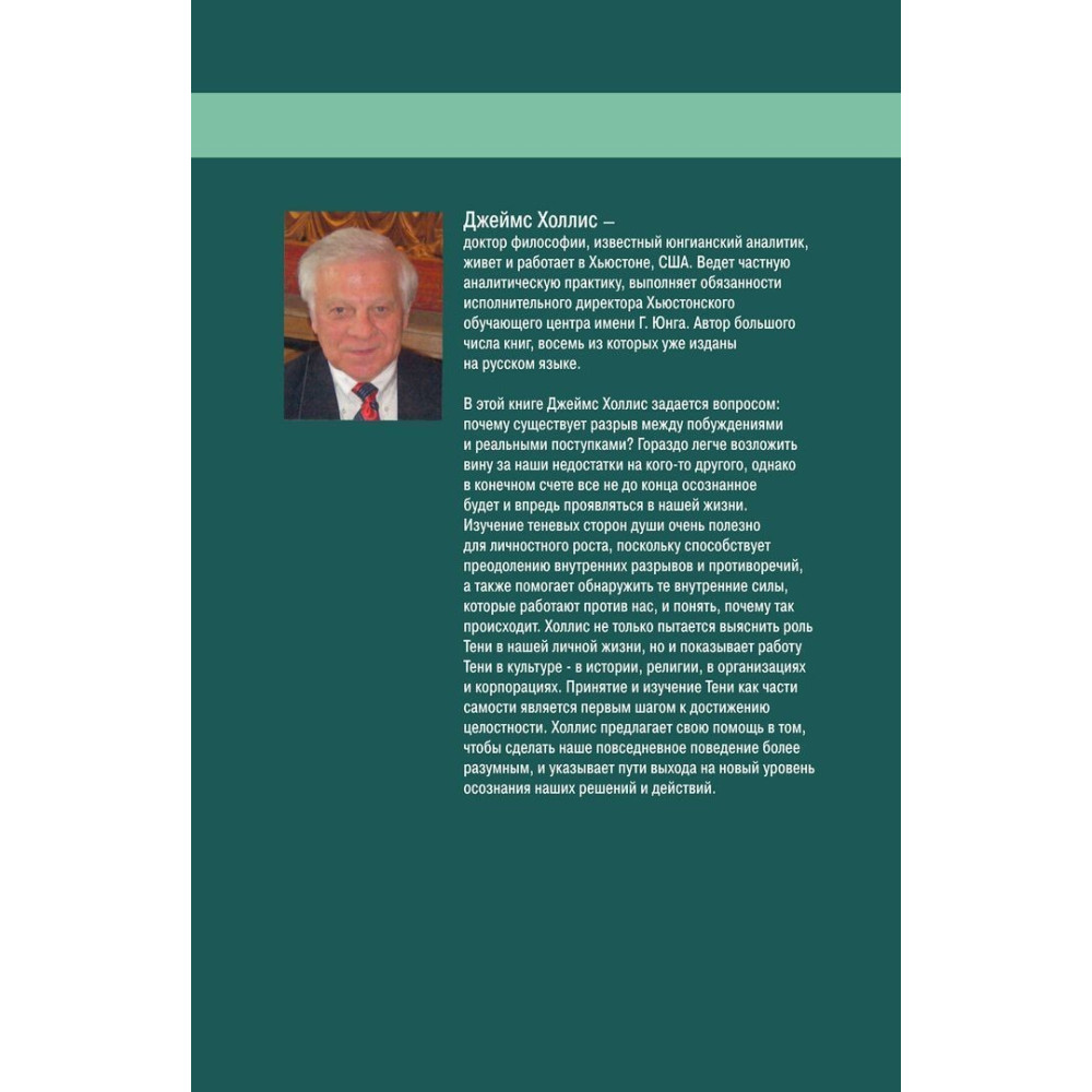 Джеймс Холлис, Ph. D. — американский юнгианский психоаналитик, писатель и оратор, имеющий частную практику в Вашингтоне, округ Колумбия. Много лет работал исполнительным директором Образовательного центра Юнга в Хьюстоне, штат Техас, до 2019 года был исполнительным директором общества Юнга в Вашингтоне, а в настоящее время входит в совет директоров JSW. Холлис был первым директором по тренингам в Филадельфийском институте Юнга и является почетным вице-президентом Фонда Филемона (Philemon Foundation), занимающимся исключительно творчеством Карла Юнга. Кроме того, старший аналитик в Межрегиональном обществе юнгианских аналитиков и специализируется на психологическом развитии и духовном поиске. Написал 19 книг и немало статей, исследующих темы самопознания, личностного развития, архетипов, духовности и т.п.