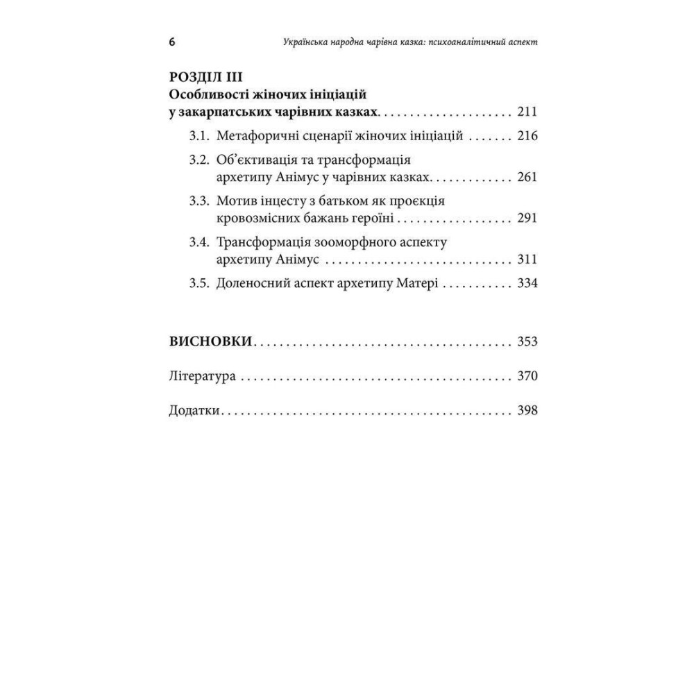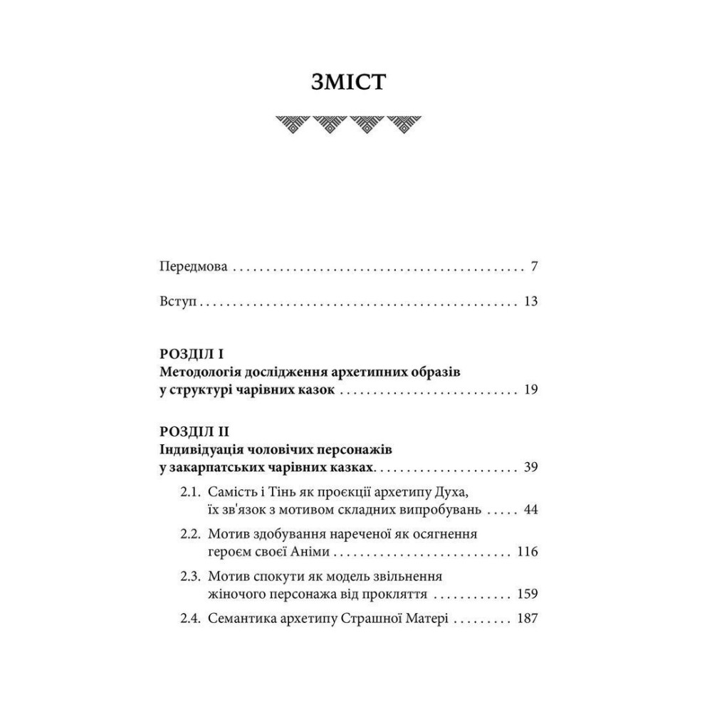 Герои трактуются как объективированные архетипы коллективного бессознательного, а сюжеты сказок – как метафорические сценарии вековых инициаций мужчины (в «мужских» сказках) или женщины (в «женских» сказках). С использованием положений психоанализа Зигмунда Фрейда и Карла Густава Юнга отражена история человеческой души, которая в волшебных сказках скрыта под системой архетипных образов, мотивов и символов. Система персонажей волшебных сказок Закарпатья рассмотрена как неразрывное единство объективированных архетипов, которые в процессе взаимодействия создают мозаичную картину индивидуации человека, которая, преодолевая границу между реальным и ирреальным, находит путь к постижению Самости.