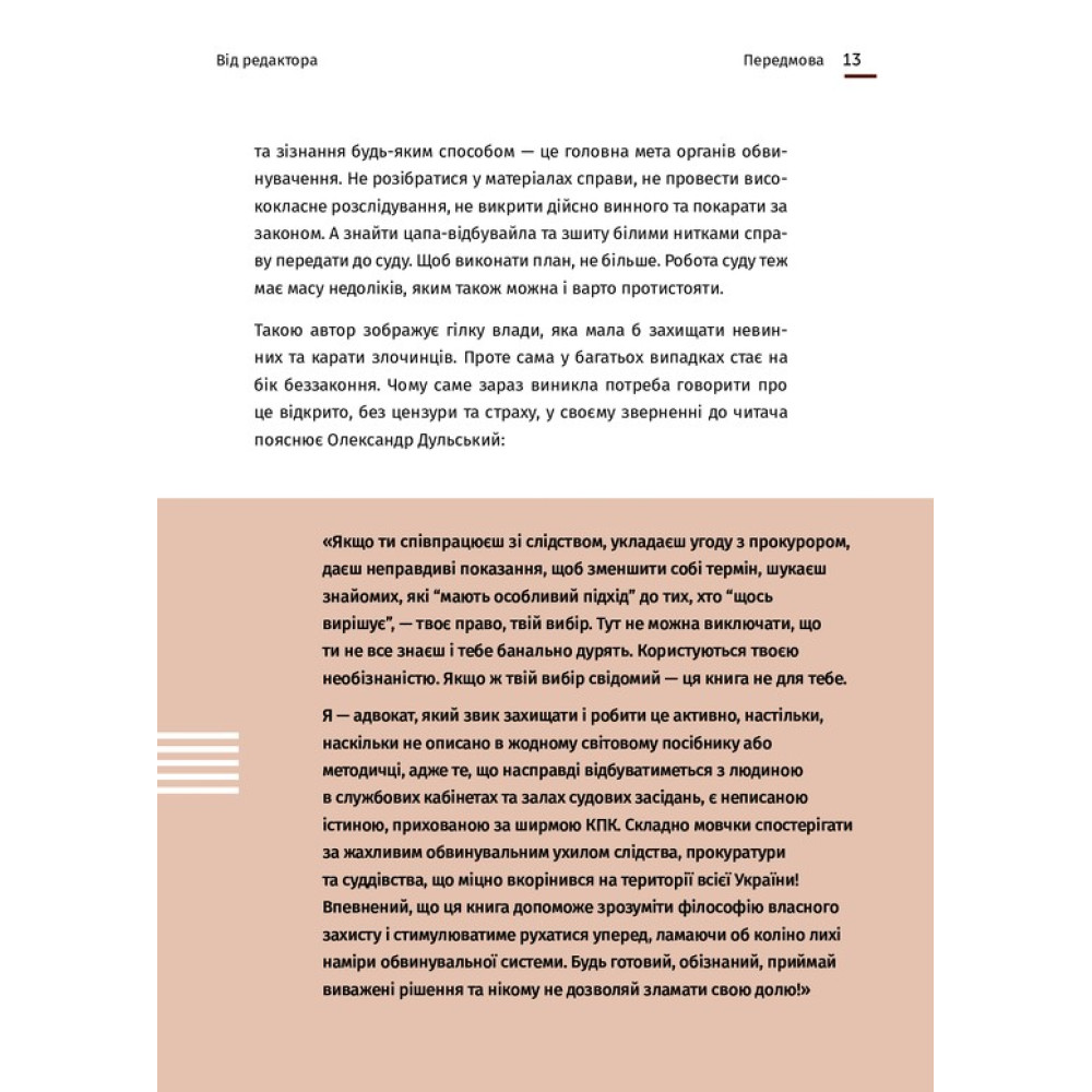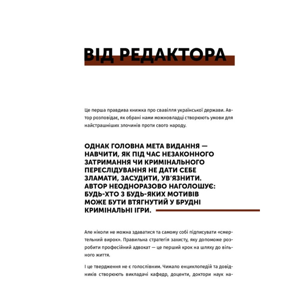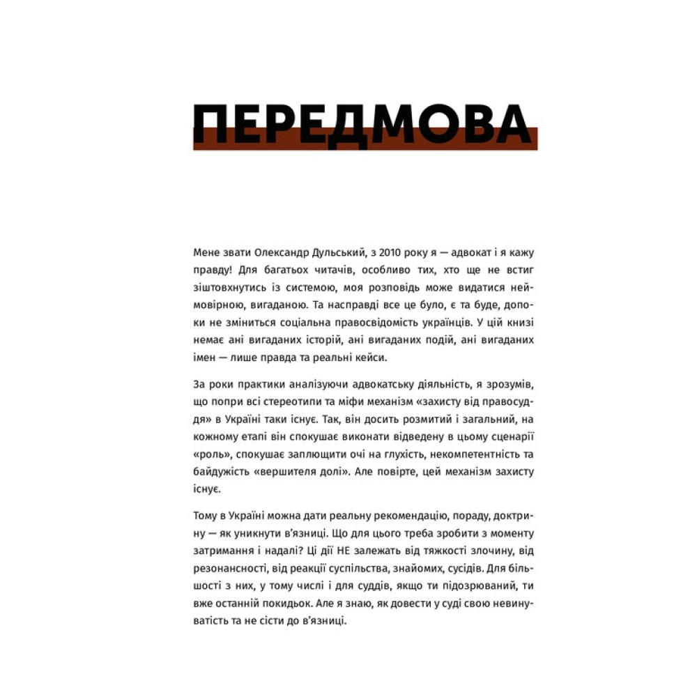 «Арест ≠ тюрьма» Александра Дульского — уникальное издание, аналогов которому нет в Украине, ведь в нем приводятся конкретные советы настоящего специалиста-практика, адвоката с большим опытом. Как обращаться, к кому обращаться, что говорить, если в один несчастный день вам выдвинули подозрение в совершении какого-либо преступления.