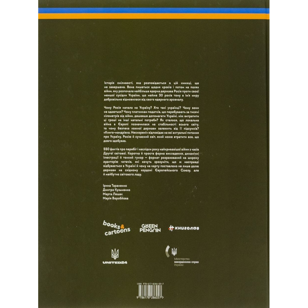 «Книга-путешествие. Непокоренные» по авторству Ирины Тараненко, Дмитрия Кузьменко, Марины Островской и других отвечает на все актуальные вопросы об Украине, России и современном мире, который может потерять все, что долго приобретал.