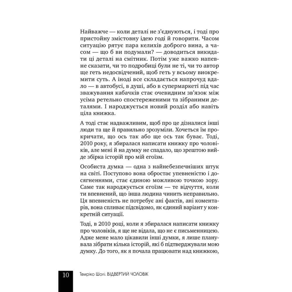 В основе книги «Откровенный мужчина» по авторству Тамрико Шоли лежат 201 откровенных интервью с мужчинами, которые автор провела с целью попытки отыскать причину неудач предыдущих отношений. Она записала беседы на диктофон и впоследствии они были оформлены в 15 увлекательных историй. Никаких имен и фото только анонимные жизненные ситуации.