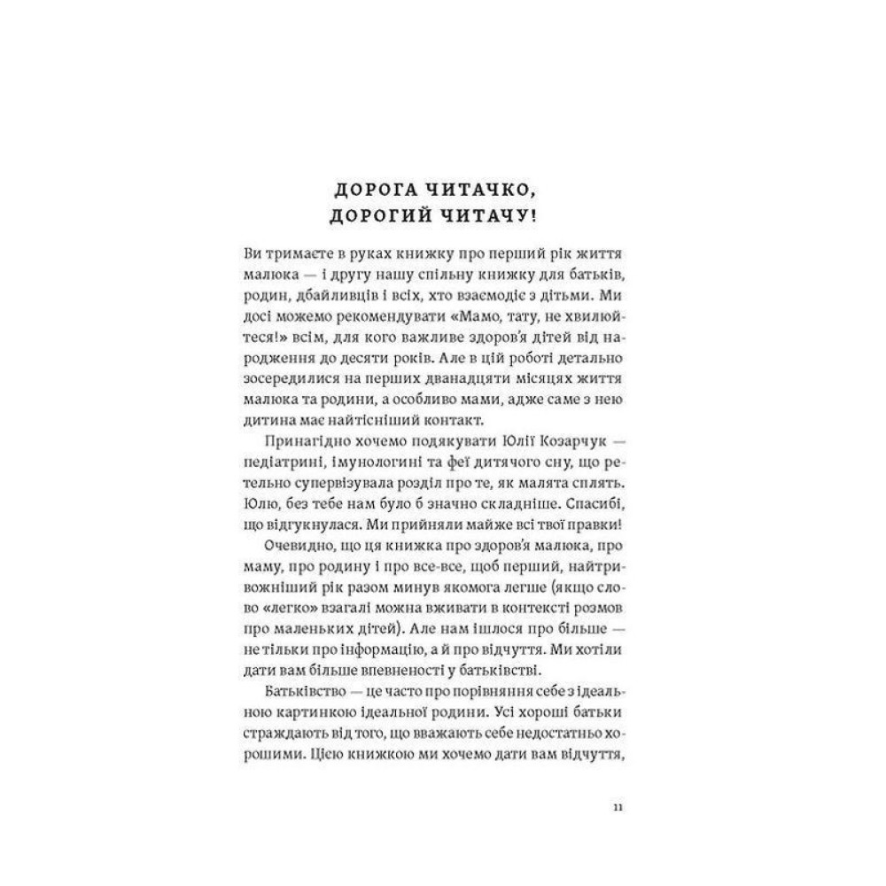 В ней с юмором и теплом изложены понятные ответы на все вопросы, которые могут тревожить семью в первый год жизни малыша. Что такое бэби-блюз, фиолетовый плач и синее молоко? Как одевать малышей и сколько ей нужно спать? Почему глаза меняют цвет со временем и когда можно звать первых гостей и отправляться на прогулку? Какая правильная форма головы, нужно ли стричь малышу ноготки и какого цвета должны быть какули?