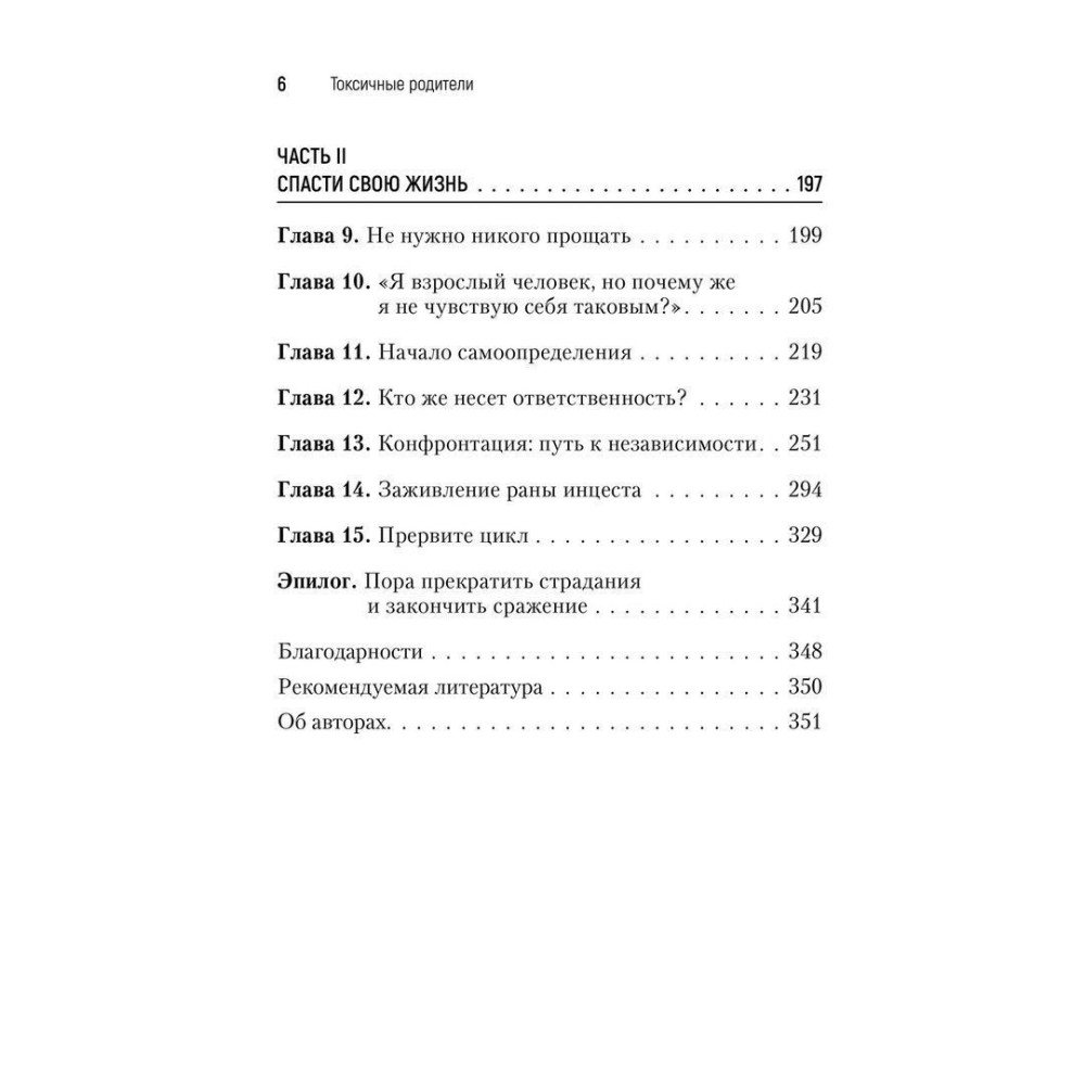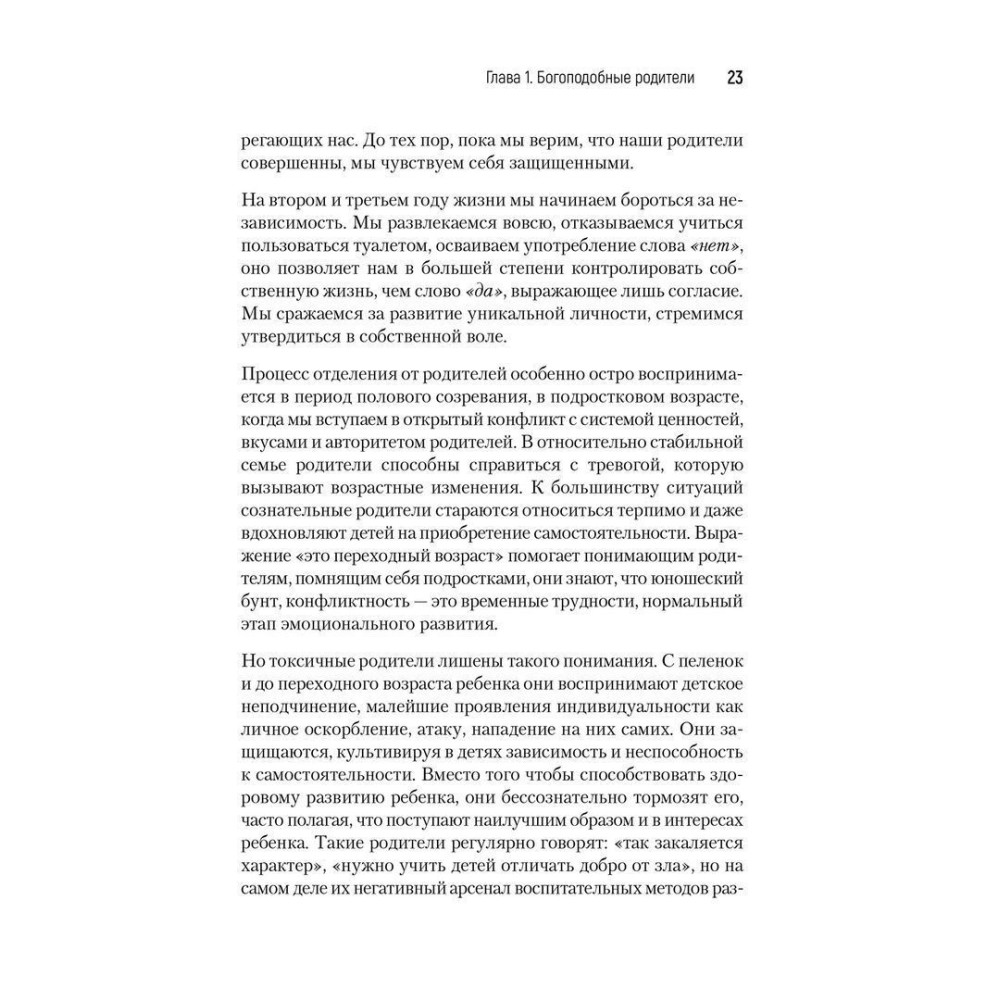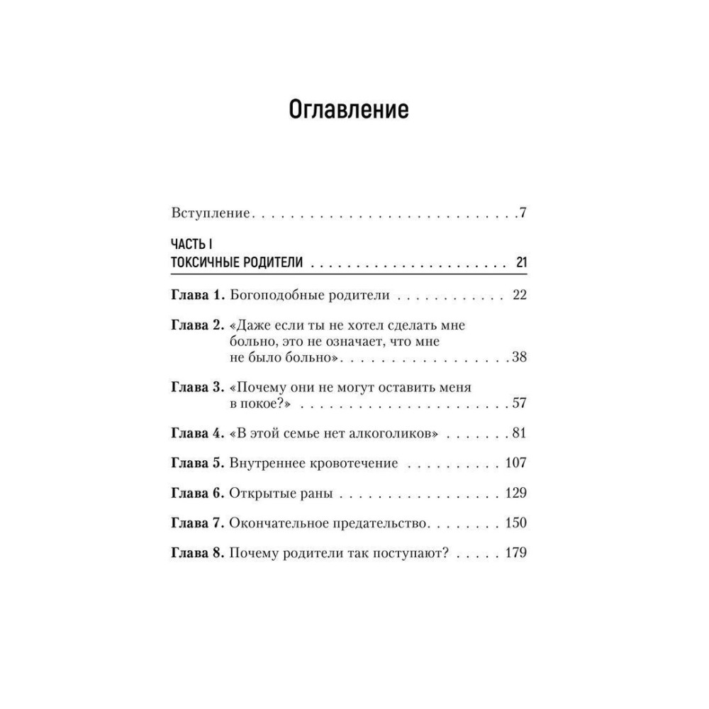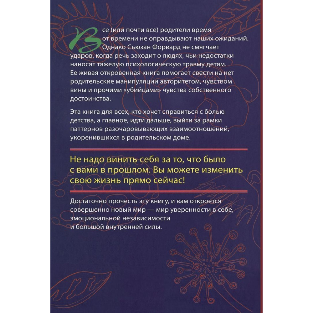 Все (или почти все) родители время от времени не оправдывают наши ожидания, однако Сьюзан Форвард и Крейг Бак не смягчают ударов, когда речь идет о людях, чьи недостатки наносят тяжелую психологическую травму детям. Их живая, откровенная книга «Токсичные родители: Как возвратят себя в нормальную жизнь» помогает свести на нет родительские манипуляции авторитетом, чувством вины и другими «убийцами» чувства собственного достоинства.