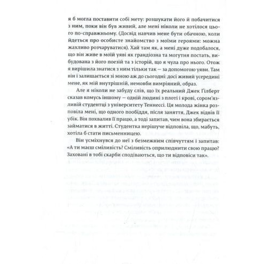 Элизабет Гилберт — популярная писательница из США, прославившаяся на весь мир автобиографическим романом «Есть, молиться, любить», опубликованном в 2006 году. Творчество автора завязано на жизненном укладе современных женщин. Любовь, романтика, семейный быт и путешествия верны спутники каждой книги автора. В ее произведениях можно найти изображения абсолютно всех женщин.