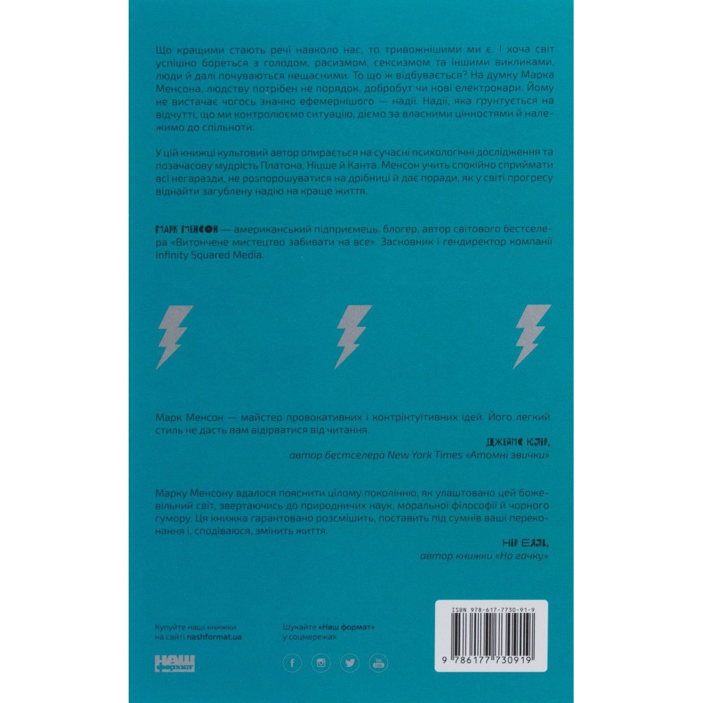 В новой книге «Все замахало. Но надежда есть» Марк Менсон, который показал сотням тысяч читателей, как умерщвлять на незнакомые вещи, идет дальше, анализируя наше отношение к деньгам, песню, пол. С юмором, отчаянностью и эрудицией Мэннон представляет стереотипные представления о счастье, свободе и даже надежду. Менсон побуждает самые неожиданные чувства, призывая напоследок быть честнее с собой и миром.