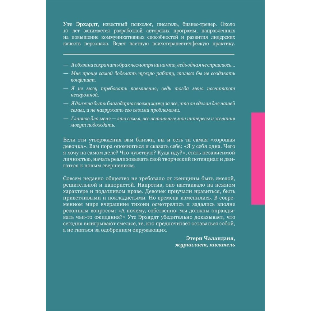 Уте Эрхардт, автор книги «Хорошие девочки отправляются на небеса, а плохие — куда захотят», рассказав множество жизненных историй, доказывает: кроткие и покорные женщины, отказавшись ради семьи и детей от образования, карьеры и любого развития, теряют свою индивидуальность и становятся своей индивидуальностью. Пора уже проснуться и сказать себе: «Я у себя одна. Чего я хочу? Что я чувствую? Куда иду?» — стать независимой личностью, начать реализовывать свой творческий потенциал и двигаться к новым свершениям.