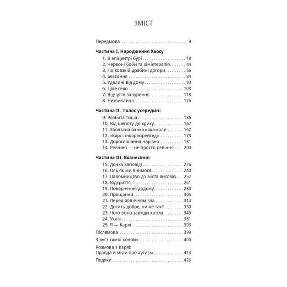 В международном бестселлере «Голос Карли» объединяются два рассказа: отца и участника движения за информированность об аутизме Артура Флейшманна и его дочери Карли, которой поставили диагноз аутизма. После многих лет уныния в том, что он никогда не сможет общаться с окружающим миром, путем неустанной работы ему это удается.