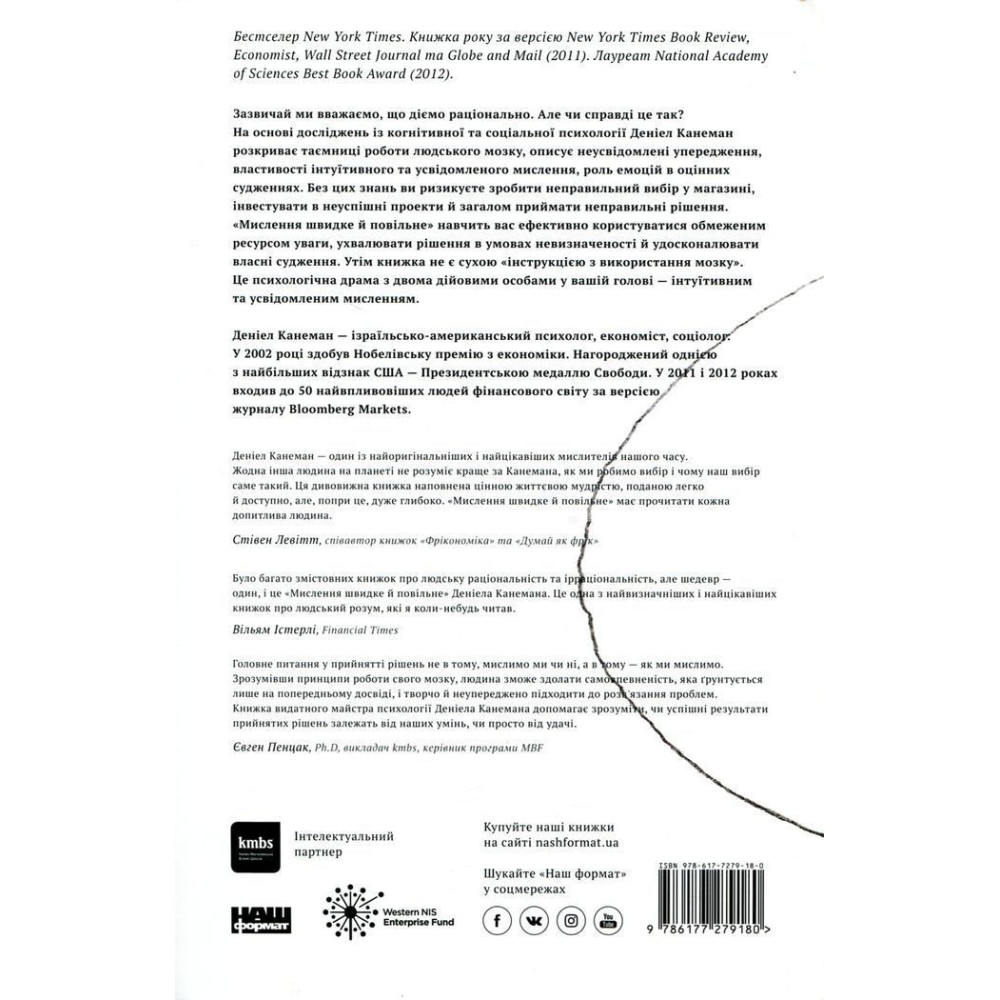 На основе исследований по когнитивной и социальной психологии Дэниел Канеман в книге «Мышление быстрое и медленное» раскрывает тайны работы человеческого мозга, описывает неосознанные предубеждения, свойства интуитивного и осознанного мышления, роль эмоций в оценочных суждениях. Без этих знаний вы рискуете сделать неправильный выбор в магазине, инвестировать в неуспешные проекты и принимать неправильные решения.